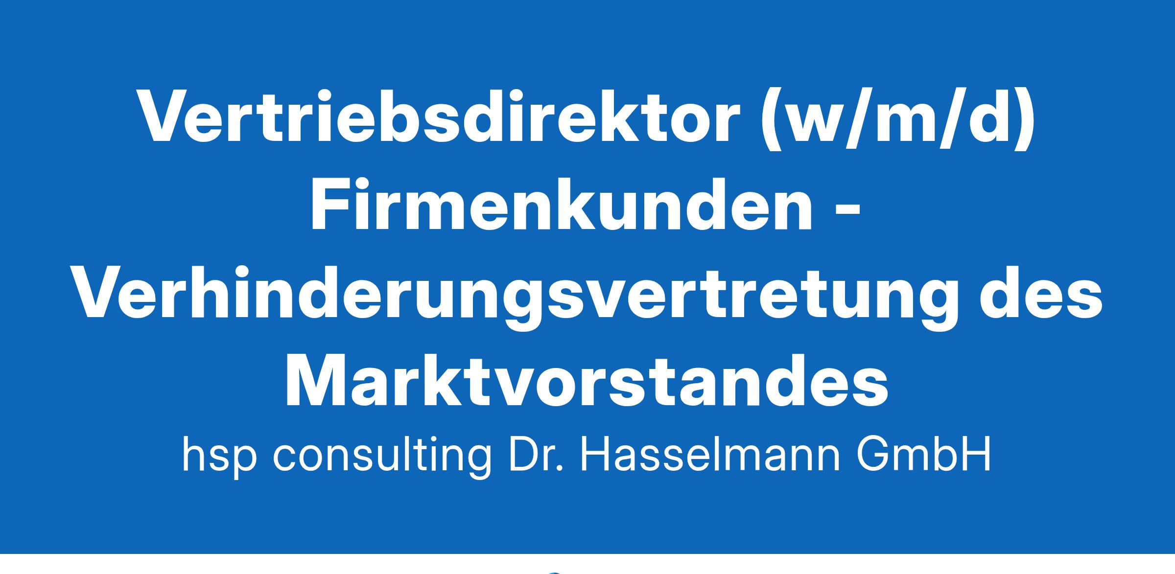 Exponierte Vertriebsverantwortung mit Perspektive Unsere Auftraggeberin ist eine erfolgreiche vertriebsorientierte Sparkasse in der Metropolregion Hamburg mit einer Bilanzsumme von mehr als 4Mrd.EUR. Im attraktiven wie wirtschaftsstarken Geschäftsgebiet ist die Sparkasse aufgrund ihrer modernen kundenorientierten Vertriebsstrukturen, des verbundübergreifenden umfassenden Produkt- und Dienstleistungsangebotes sowie nicht zuletzt der engagierten Mitarbeitenden erfolgreich als Partner ihrer privaten und mittelständischen Kunden in der Region. Nachdem der aktuelle Stelleninhaber in den Vorstand der Sparkasse berufen wurde, suchen wir als Nachfolger/-in eine unternehmerisch denkende und handelnde Führungspersönlichkeit, die den Firmenkundenvertrieb der Zukunft für die Sparkasse gestaltet. Diese Position ist verbunden mit der Funktion als Verhinderungsvertreter/-in des Marktvorstandes. Soweit die nötigen Voraussetzungen hierzu noch nicht geben sind, besteht auch die Möglichkeit einer diesbzgl. Qualifizierung entsprechend den Anforderungen nach § 25c KWG. Im Zuge der Bestrebungen des Hauses, den Anteil weiblicher Führungskräfte zu erhöhen, werden bei gleicher Eignung Bewerberinnen bevorzugt berücksichtigt. Vertriebsdirektor (w/m/d) Firmenkunden Verhinderungsvertretung des Marktvorstandes Ihre Aufgaben in dieser Funktion sind Sie verantwortlich für das komplette Firmenkundengeschäft der Sparkasse sowie die ziel- und ertragsorientierte Steuerung sämtlicher Aktivitäten weitere Schwerpunkte Ihrer Aufgabe bilden die zielbezogene Führung und Entwicklung der Führungskräfte sowie Mitarbeitenden im Firmenkundenvertrieb durch eine zielgerichtete Aktivitätensteuerung sowie das Entwickeln ertrags- und chancenorientierter Marktbearbeitungsansätze stellen Sie ein stringentes Ausschöpfen der vorhandenen Marktpotenziale sicher zudem betreuen und akquirieren Sie ausgewählte Kunden, unterstützen Ihr Team in exponierten Einzelfällen und pflegen Kontakte zur regionalen Wirtschaft und Politik in Zusammenarbeit mit dem Vertriebsmanagement entwickeln Sie regelmäßig die Strukturen, Vertriebs- bzw. Betreuungskonzeption, Produktportfolien und Prozesse zukunftsgerichtet weiter Ihr Profil die Basis Ihrer beruflichen Qualifikation bilden umfangreiche Praxiserfahrungen im qualifizierten Firmenkundengeschäft, die durch ein betriebswirtschaftliches Studium oder eine vergleichbare theoretische Qualifikation ergänzt werden mit umfassenden Fach- und Produktkenntnissen, auch bzgl. der Strukturierung großer bzw. komplexer Finanzierungen, verfügen Sie über umfassende Urteilssicherheit im Kreditgeschäft als erfahrene Führungskraft verstehen Sie es, Vertriebseinheiten vertrieblich zu entwickeln und motivieren, für Erfolg zu begeistern sowie zum Erreichen anspruchsvoller Ergebnisse zu führen, dabei verkörpern Sie mit Ihrem unternehmerischen Ergebnisanspruch, Engagement und persönlicher Vertriebsstärke eine Vorbildfunktion im Kundenkontakt überzeugen Sie mit einem sicheren kundenorientierten Auftreten und sind auch anspruchsvollen Kunden und Verhandlungspartnern ein souveränes Gegenüber Wenn Sie sich von dieser anspruchsvollen Aufgabe angesprochen fühlen, dann bewerben Sie sich mit aussagekräftigen Unterlagen (einschließlich Ihrer Gehaltsvorstellung und dem möglichen Eintrittstermin) in unserem Online-Portal oder per E-Mail jobs@hsp-consulting.de. Zur telefonischen Vorabklärung Ihrer Fragen stehen Ihnen Herr Dr. Dieter Hasselmann (Tel. 040-369 853 30) oder Frau Gabriele Will (Tel. 040-369 853 60) gern zur Verfügung. Vertraulichkeit und Diskretion dürfen Sie voraussetzen. hsp consulting Dr. Hasselmann GmbH Dorothea-Bernstein-Weg 32 | 22081 Hamburg www.hsp-consulting.de | jobs@hsp-consulting.de