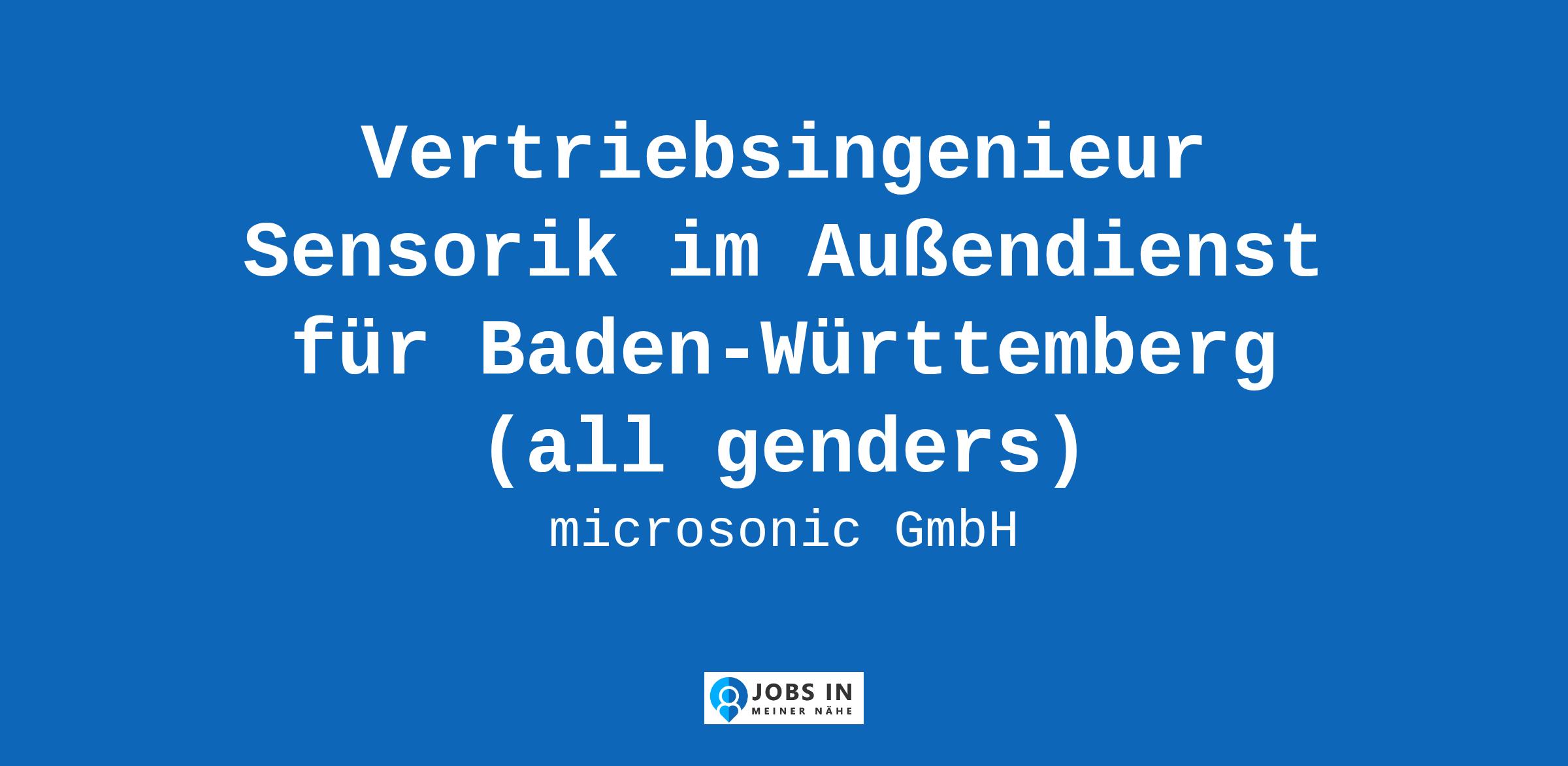 Auf Zukunft geschaltet. Von zufriedenen Kunden begeistert. Sind Sie bereit für Ultraschall? Wir entwickeln smarte Sensorlösungen - Sie sind vor Ort beim Kunden und arbeiten mit ihm gemeinsam an der digitalen Fabrik von morgen. microsonic ist Technologieführer im Spezialgebiet Ultraschall-Sensorik... Feste;Sensorik;Automatisierung;Verhandlungsführung;Deutsch;Kommunikation;Maschinenbau;Angebotserstellung;Engagement;Verkaufsgebiete;Bedarfsanalyse;Außendienst;Maschinenanlagen;Selbstbewusstsein;Kundenstamm;Reisebereitschaft;Neue Kunden;Vertriebsprozesse Original Stellenanzeige auf StepStone.de – Jetzt Jobagent bei StepStone einrichten und Traumjob finden! https://bit.ly/2KOagYD Mehr Informationen zu Arbeitgebern, Gehaltsdaten und Karrieretipps finden Sie auf StepStone.de