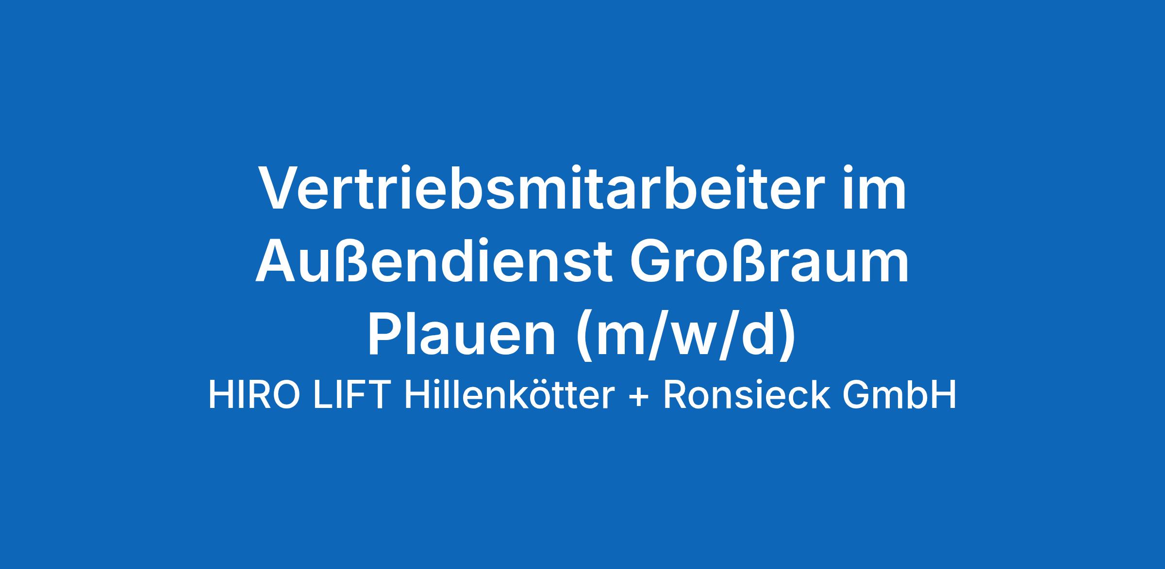 Vertriebsmitarbeiter im Außendienst Großraum Plauen (m/w/d)