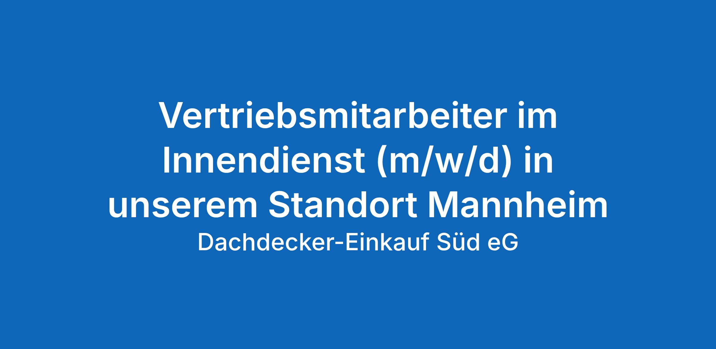 Vertriebsmitarbeiter im Innendienst (m/w/d) in unserem Standort Mannheim