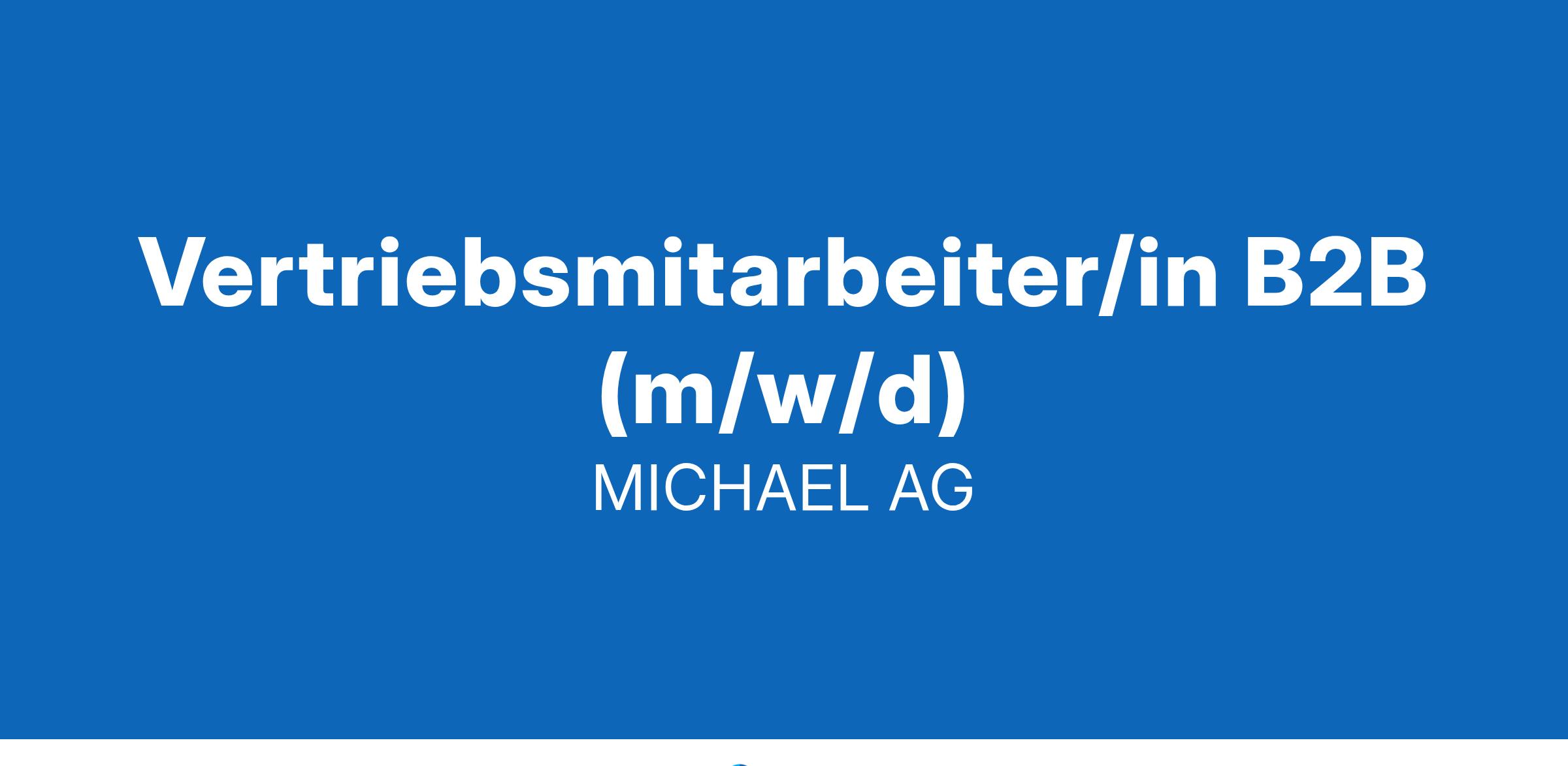 Vertriebsmitarbeiter/in B2B (m/w/d) Wir suchen eine/n Vertriebsmitarbeiter/in B2B (m/w/d) Wir bieten eine ausgeglichene Work/Life-Balance dank Gleitzeit, 30 Tagen Urlaub und Homeoffice Möglichkeiten ein anspruchsvolles, innovatives und abwechslungsreiches Aufgabengebiet ein professionelles Arbeitsumfeld und angenehmes Arbeitsklima nette Teams und flache Hierarchien eigenverantwortliches Arbeiten mit Freiraum zur Gestaltung einen langfristig sicheren Arbeitsplatz in einem zukunftsorientierten Umfeld attraktive Zusatzleistungen wie z.B. betriebliche Altersvorsorge, VWL, Corporate Benefits, etc. flexible Arbeitszeiten einen unbefristeten Arbeitsvertrag Gewünschtes Profil gelegentliche Reisebereitschaft (Jahresgespräche / Messen) Kommunikationsfähigkeit und ein sicherer Umgang mit MS-Office Produkten Produkt- und Fachkenntnisse im Bereich ITK wünschenswert, aber keine Voraussetzung Berufserfahrung im Vertrieb abgeschlossene kaufmännische Berufsausbildung Zukünftige Schwerpunkte Verkauf von ITK-Produkten und Dienstleistungen Bestandskundenbetreuung und Neukundenakquisition (B2B) Erarbeitung und Nachverfolgung von Angeboten enge Zusammenarbeit mit dem Produktmanagement Auswertung von Markt- und Wettbewerbsanalysen gelegentliche Teilnahme an Firmen-Veranstaltungen (Messen und Roadshows) selbstständiges, eigenverantwortliches und systematisches Arbeiten Bewerbungen unter Angabe des möglichen Eintrittstermins und des Gehaltswunsches gerne per Mail an: MICHAEL AG Personalabteilung Bruchheide 34 49163 Bohmte Telefon: 05471 / 806 - 0 Mail: bewerbung@michael-ag.de Wer wir sind: Die MICHAEL AG ist ein etablierter IT & TK Großhandel. Wir sind seit 1984 erfolgreich in der Telekommunikations- und Informationstechnik tätig. Dabei bieten wir unseren ca. 8.500 Händlern im In- und Ausland ein professionelles Leistungsprofil mit den Schwerpunkten IT & TK Distribution, Warenhandel/-versand, Netzvermarktung, Schulung und Beratung. Schließlich liefern wir als Vollsortimenter der Branche schnell über 20.000 Artikel von über 250 Herstellern. Beratung, Planung und Lösungen sind unsere Stärke. Erfahre mehr über uns