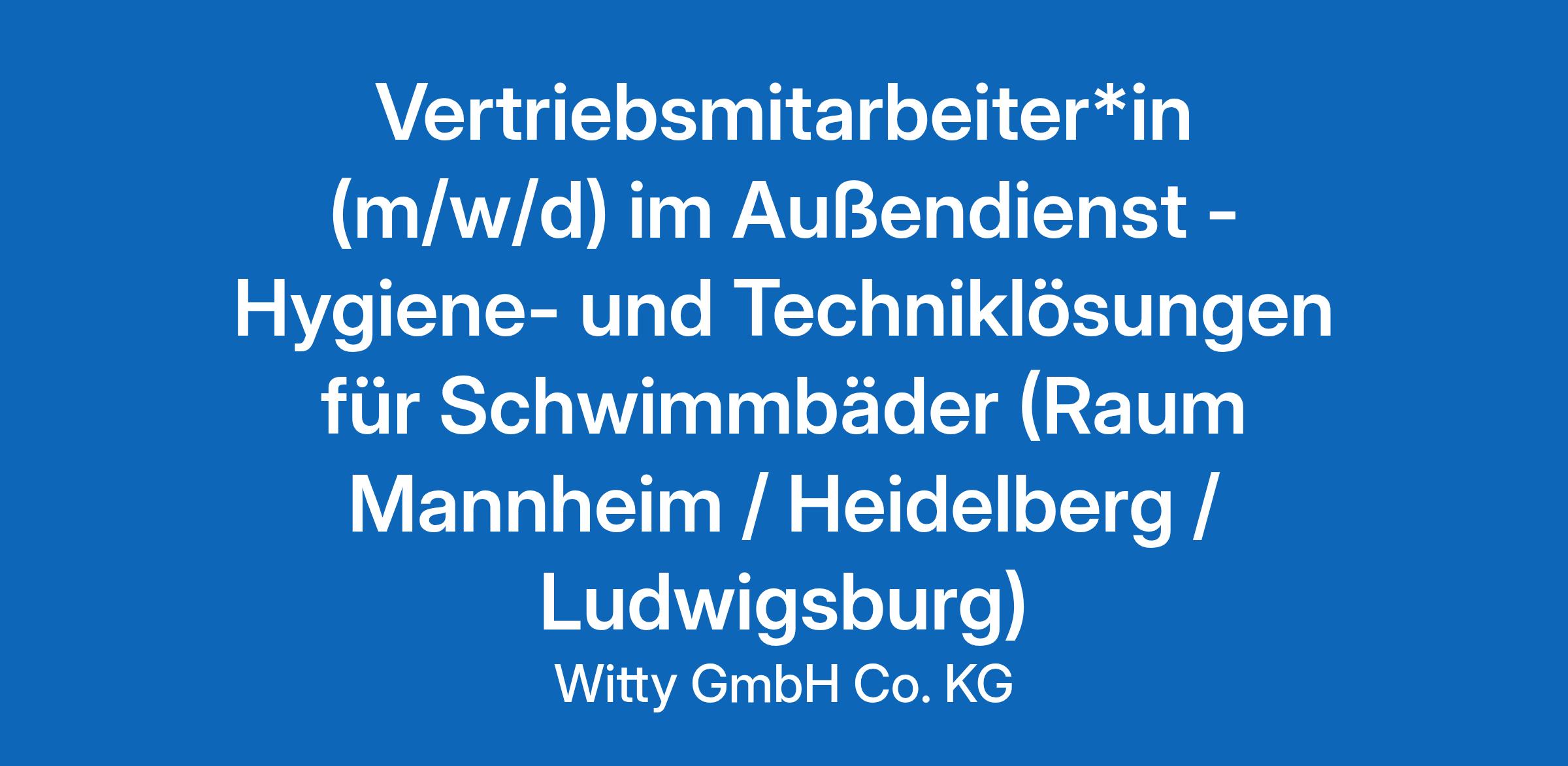 Vertriebsmitarbeiter*in (m/w/d) im Außendienst - Hygiene- und Techniklösungen für Schwimmbäder (Raum Mannheim / Heidelberg / Ludwigsburg)