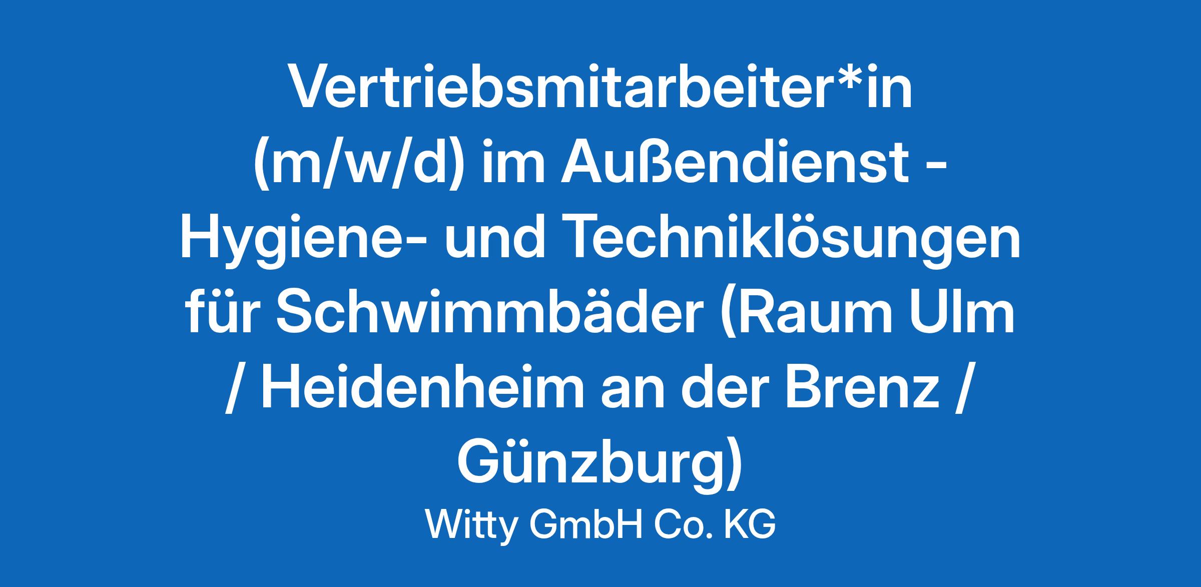 Und der Job als Vertriebsmitarbeiter*in (m/w/d) im Außendienst? Abwechslungsreich, spannend und voller Chancen! Seit 80 Jahren bieten wir als Familienunternehmen professionelle Hygiene- und Techniklösungen im B2B-Bereich. Unsere Vision: Zukunft gestalten mit Digitalisierung, Innovation und Nachha... Hygienevorschriften;Begeisterung;kontaktfreudig;Kunden-Akquisition;Schwimmbad;Selbstmotivation;Verkaufgeschick;Kommunikation;Eigeninitiative;Berichterstattung;Außendienst;Kundendienst;Tourenoptimierung;Kommunikation;Dienstleistung;Terminplanung;Beratungskompetenz;Verantwortung;Vertrieb Original Stellenanzeige auf StepStone.de – Jetzt Jobagent bei StepStone einrichten und Traumjob finden! https://bit.ly/2KOagYD Mehr Informationen zu Arbeitgebern, Gehaltsdaten und Karrieretipps finden Sie auf StepStone.de