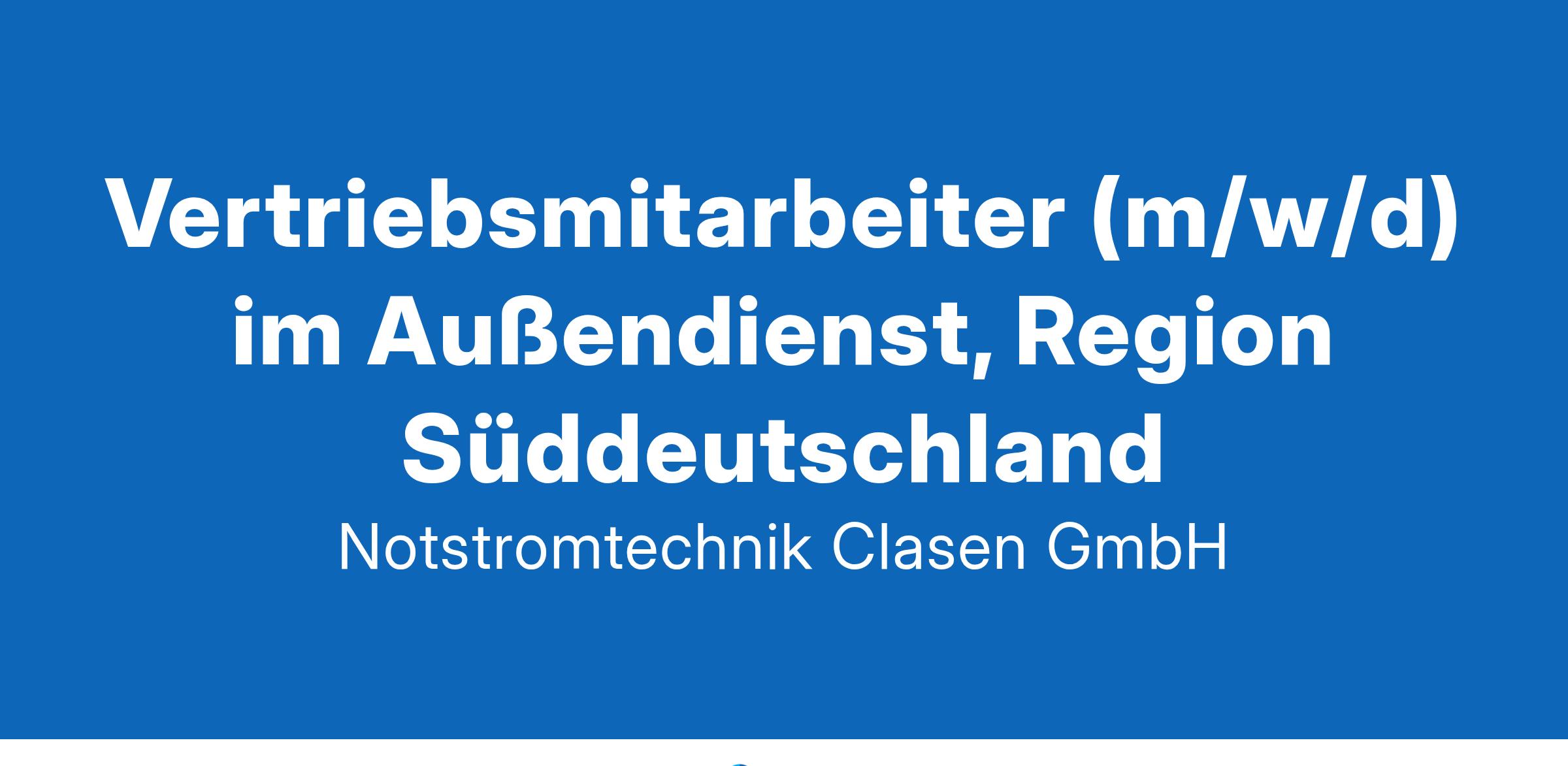 Vertriebsmitarbeiter (m/w/d) im Außendienst, Region SüddeutschlandOhne Strom geht nichts. Wir rüsten Unternehmen sicher mit Notstrom aus, damit sie sorgenfrei und unabhängig wirtschaften können! Möchten Sie ein Teil unseres Teams werden? Es erwartet Sie ein abwechslungsreicher Arbeitsplatz in einem weiterhin stark wachsenden Markt mit großen Zukunftsperspektiven. Zur Verstärkung unserer Abteilung Servicevertrieb in der Niederlassung Frankfurt am Main suchen wir schnellstmöglich Vertriebsmitarbeiter (m/w/d) im Außendienst, Region SüddeutschlandIhre Aufgaben Akquise von Neukunden im Bereich Ersatzgeschäft für Batterietausch und USV-Anlagentausch Betreuung und Pflege von Bestandskunden im Bereich Ersatzgeschäft Eigenständige Angebotserstellung und Kalkulation in unserem ERP-System Nachhaltung, Nachverfolgung von Angeboten -und listen und des Vertriebsdashboards im CRM-System Aufträge im Ersatzgeschäft an die Auftragsbearbeitung übergeben und bis zur Abnahme zur Sicherstellung der Kundenzufriedenheit begleiten Regelmäßige Aktualisierung der Forecastlisten zur Vertriebsplanung Ihr Profil Abgeschlossene technische Ausbildung, idealerweise im Elektrobereich oder eine vergleichbare Ausbildung (z.B. kaufmännische Ausbildung mit ausgeprägtem Interesse zur Elektrotechnik) Mehrjährige Berufserfahrung im Vertrieb, idealerweise von technischen Produkten Hohes Durchsetzungsvermögen, strategisches Denken und sehr gute Kommunikationsfähigkeit Sehr gute Deutschkenntnisse in Wort und Schrift, Englischkenntnisse wünschenswert Sicherer Umgang mit Office 365 Leidenschaft, Lösungsorientierung und Lernbereitschaft zeichnen Sie aus Sie haben Spaß am Informationsaustausch, arbeiten gerne in klaren Strukturen und haben Freude daran, unseren Kunden jeden Tag etwas Gutes zu tun Wir bieten Attraktive Vergütung Zielgerechte und fundierte Einarbeitung Fachspezifische sowie persönliche Fortbildungs- und Entwicklungsmöglichkeiten Volle Übernahme von VL-Leistungen Betriebliche Altersvorsorge, Berufsunfähigkeit, betriebliche Krankenversicherung Flexible Arbeitszeiten und 2 Tage Mobile Working/Woche Job-Rad Leasing, Urban Sports Club und weitere Benefits Modernes IT-Equipment Dienstfahrzeug mit 1%-Regelung KontaktDas passt? Wir sind neugierig auf Sie und freuen uns auf Ihre Bewerbung an E-Mail: bewerbung-servicevertrieb@ntc-gmbh.com Notstromtechnik-Clasen GmbH Kurt-Fischer-Str. 39 | 22926 Ahrensburg Tel: 04102 2102-0 | www.ntc-gmbh.com