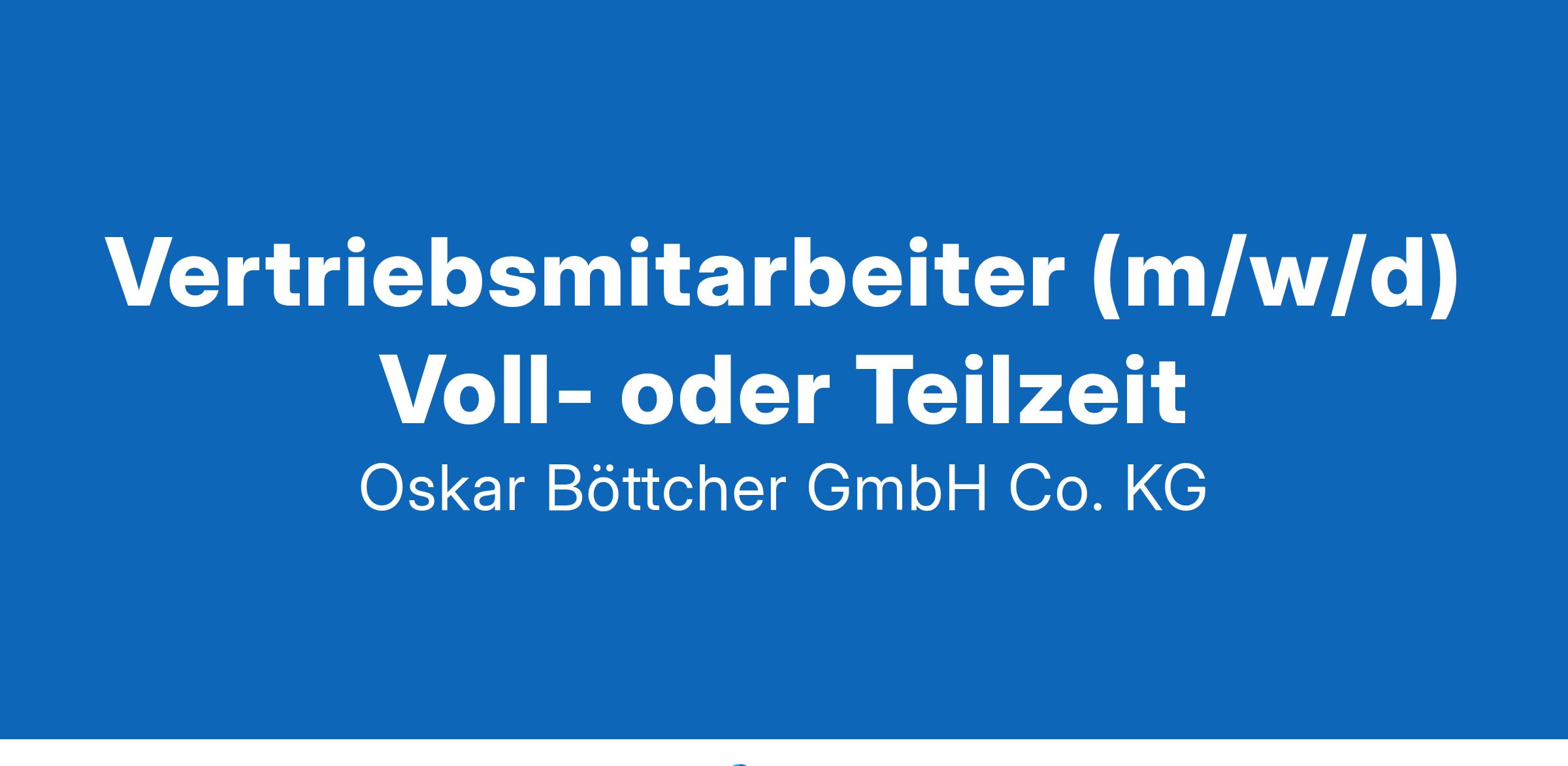 Wochenenden frei. Immer.Was ist zu tun? Vertrieb und Verkauf der gesamten Produktpalette Kundenberatung und -betreuung von höchst fachlich bis höchst persönlich auf höchst freundlich Angebotserstellung und Kalkulation mit Freude, Verstand und Taschenrechner Erweiterung und Betreuung unseres Kundestamms Wer sind Sie? Kaufmännische, technische oder handwerkliche Ausbildung (Kaufmann/-frau für Groß- und Außenhandelsmanagement, Elektroinstallateur/in, kaufmännische/r Sachbearbeiter/in o.ä.) Sie mögen es Kunden zu beraten und zu begeistern Freundliches und serviceorientiertes Auftreten gegenüber Kunden, Kollegen und Partnern Sie verfügen idealerweise über erste Vertriebserfahrung Gute Deutschkenntnisse in Wort und Schrift Was ist zu holen? Gehalt! Überrascht? Urlaubs- und Weihnachtsgeld obendrein! Stabilität und Krisensicherheit bei familiärer Atmosphäre seit 1901. Wir wiederholen: Seit 1901! 30 Tage Urlaub für Hobby, Familie und Freizeit Urlaubs-, Weihnachtsgeld und betriebliche Altersvorsorge Bike-Leasing, Mitarbeitervorteilsprogramm, Gesundheitsförderung Mitarbeiterempfehlungsprämie sowie EAP Beratungsservice für mentale Gesundheit Zuschuss zum Firmenticket und kostenloses Kaffeeangebot KontaktWir freuen uns über Ihre Bewerbung und melden uns schnellstmöglich bei Ihnen zurück.Online bewerben Oskar Böttcher GmbH & Co. KG