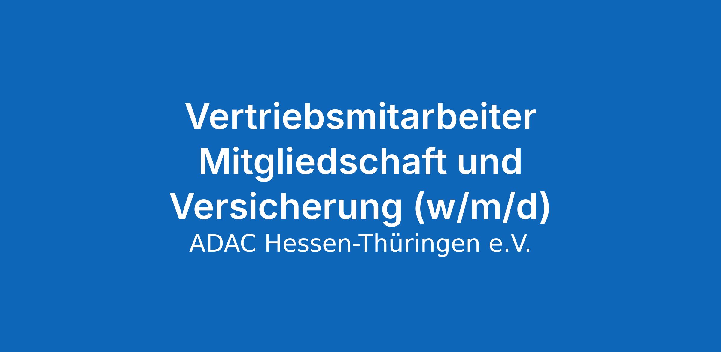 Dein Herz schlägt für den Vertrieb? Dann entdecke den ADAC als Deinen nächsten Arbeitgeber und schaffe durch Deine Beratung die Basis dafür, dass Menschen im entscheidenden Moment Hilfe an ihrer Seite wissen. Wir, der Regionalclub ADAC Hessen-Thüringen e.V., sind für über 2,3 Millionen Mitglieder der Ansprechpartner für alle Fragen und Anliegen rund um die Themen Mobilität, Versicherungen und natürlich die ADAC Mitgliedschaft.