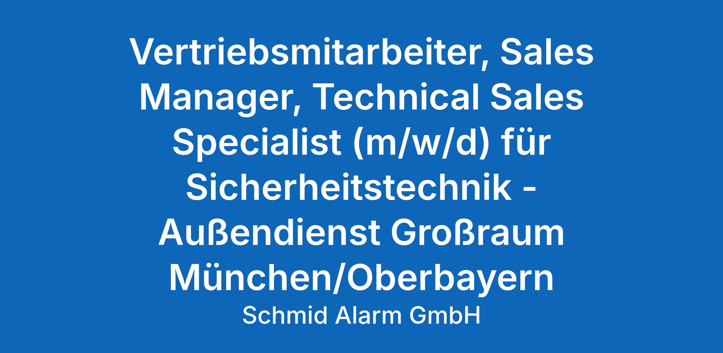 Vertriebsmitarbeiter, Sales Manager, Technical Sales Specialist (m/w/d) für Sicherheitstechnik - Außendienst Großraum München/Oberbayern