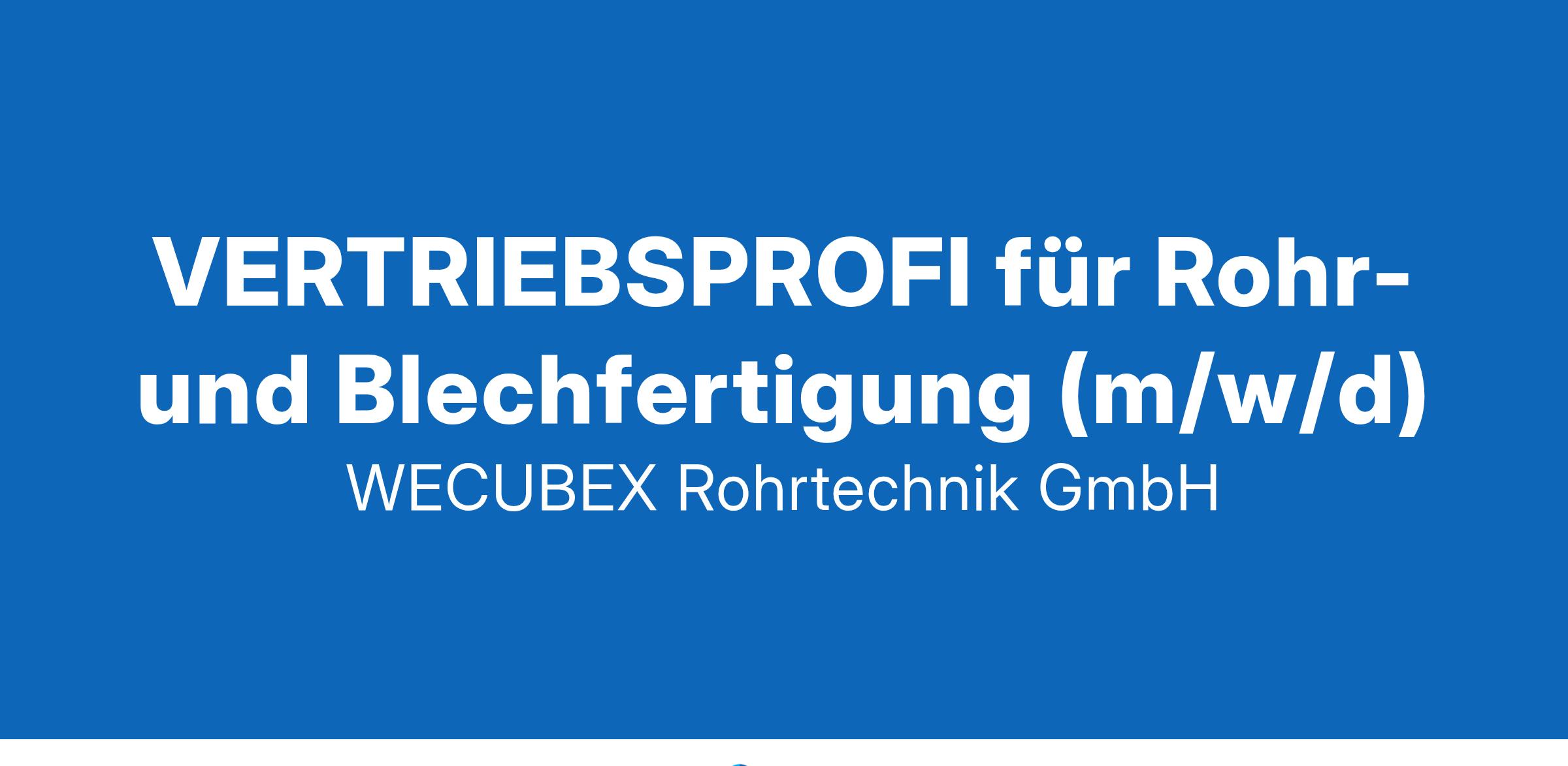 Als ein Teil der WECUBEX-Gruppe repräsentieren wir auch einen der größten Systemanbieter u.a. mit Standorten in Österreich, Tschechien und Rumänien.Wir suchen Dich als:VERTRIEBSPROFI für Rohr- und Blechfertigung (m/w/d)DEINE AUFGABEN SIND u. a.Leidenschaftliche Akquisition von Neukunden und Pflege bestehender Kundenbeziehungen im Bereich Blech- und RohrbearbeitungBeratung und Unterstützung der Kunden bei technischen Fragen und individuellen LösungenErstellung von Angeboten und Verhandlungen von VerträgenMarktbeobachtung und Analyse von Trends sowie WettbewerbsaktivitätenZusammenarbeit mit der Produktionsabteilung zur Sicherstellung der KundenzufriedenheitTeilnahme an Messen und Veranstaltungen zur Präsentation unserer Produkte und DienstleistungenUNSERE ANFORDERUNGEN SIND u. a.Abgeschlossene kaufmännische oder technische Ausbildung, idealerweise im Bereich Metallverarbeitung oder MaschinenbauMehrjährige Erfahrung im Vertrieb, bevorzugt in der Blech- und RohrbearbeitungAusgeprägte Kommunikations- und VerhandlungsfähigkeitenTechnisches Verständnis und die Fähigkeit, komplexe Produkte zu erklärenSelbstständige, zielorientierte und strukturierte ArbeitsweiseHohe Motivation und Teamgeist sowie die Fähigkeit, andere zu inspirierenBegeisterung für die eigene Entwicklung und die Möglichkeit, Verantwortung zu übernehmenHohe Reisebereitschaft und FlexibilitätEnglisch in Wort und SchriftWIR BIETEN DIRBUDDY-Programm für eine begleitete 1:1 Einführung in den ersten Monaten