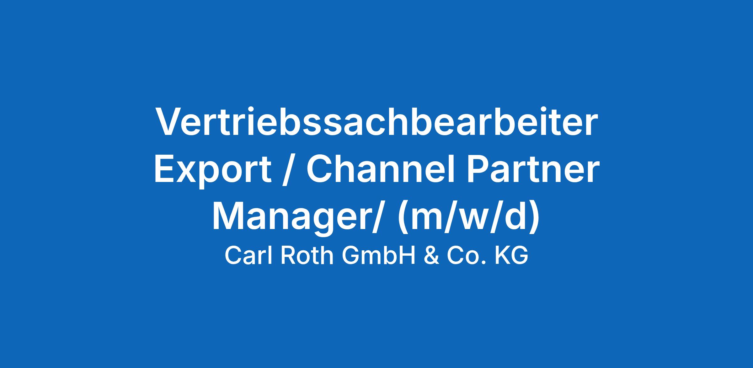 Carl ROTH unterstützt seit über 145 Jahren Menschen und Unternehmen mit Lösungen rund um die Chemie. Forschende weltweit vertrauen auf unser Know-how und unser Sortiment aus Chemikalien und Laborzubehör. Wir gestalten aktiv den Wandel in den Laboren der Zukunft und legen großen Wert auf engen Kontakt zu unseren Kunden. Unser Ziel ist es, den Alltag zu erleichtern und die Arbeit der Labore zu optimieren. Gemeinsam schaffen wir Lösungen für eine bessere Zukunft – Supporting science Improving lives. Für die Fortschreibung unserer Erfolgsgeschichte suchen wir eine überzeugende Persönlichkeit für die Stelle des „Vertriebssachbearbeiter Export / Channel Partner Manager (m/w/d)“