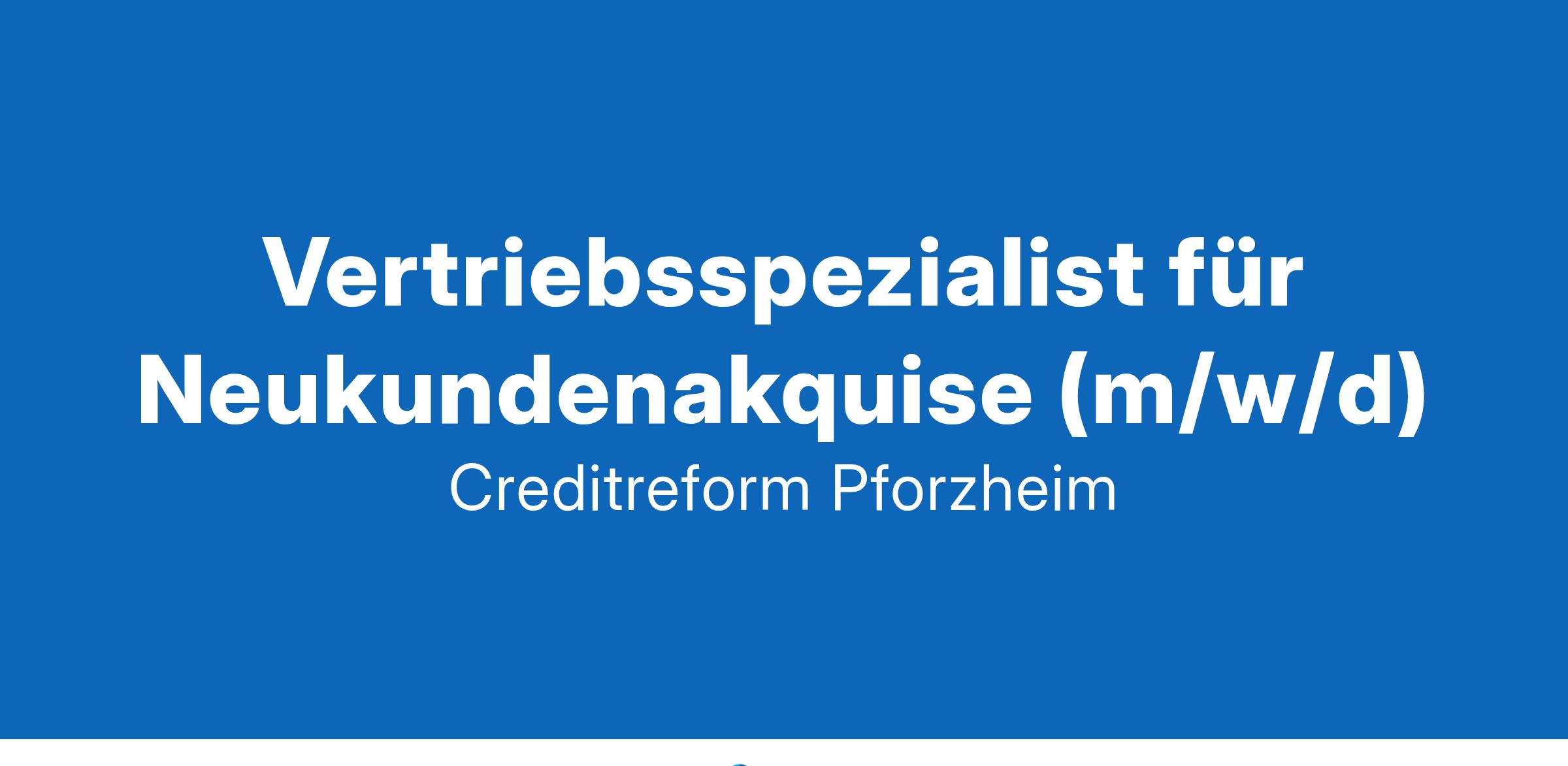 Creditreform ist Deutschlands führender Anbieter von Wirtschaftsinformationen, Marketingdaten und Lösungen zum Forderungsmanagement. Seit 1879 schützen wir Unternehmen vor Zahlungsausfällen. An dieser Grundidee hat sich bis heute nichts geändert, aber unsere Angebote haben sich fortlaufend weiterentwickelt. Weltweit vertrauen rund 160.000 Mitglieder auf unsere Lösungen und schöpfen aus unserem umfangreichen Datenbestand, den wir täglich vervollständigen und aktualisieren.Zur Verstärkung unseres Teams in Pforzheim suchen wir ab sofort einen Vertriebsmitarbeiter (w/m/d) für die Neukundenakquise Das sind Ihre AufgabenIdentifizierung, Akquisition und Gewinnung von Neukunden im Bereich B2B Sie planen und terminieren eigenständig Ihre Kundenbesuche mit tatkräftiger Unterstützung durch unseren Innendienst Verkauf der Produkte und Dienstleistungen der gesamten Creditreform-Gruppe Enge Zusammenarbeit mit den Kollegen, insbesondere mit den Kundenberatern Regelmäßige Teilnahme an internen Weiterbildungen Das macht Sie ausSie haben Spaß und Freude bei der Akquisition und Gewinnung von Neukunden Kommunikationsfähigkeit Sie besitzen Engagement und Leidenschaft für den Vertrieb, Umsetzungsstärke und Kundenorientierung Abgeschlossene kaufmännische Ausbildung und betriebswirtschaftliche Kenntnisse Mehrjährige Vertriebserfahrung On top für Sie / Ihre Vorteile30 Tage Urlaub Gleitzeit Sport- und Gesundheitsangebote Aus- und Weiterbildungen Unterstützung bei der betrieblichen Altersvorsorge und vermögenswirksame LeistungenCorporate Benefits Firmenwagen ein krisensicherer Arbeitsplatz DiensthandyHaben wir Ihr Interesse geweckt?Dann senden Sie uns Ihre Bewerbungsunterlagen (Anschreiben Lebenslauf, Zeugnisse/Nachweise) unter Angabe Ihrer Gehaltsvorstellung und Ihres frühestmöglichen Eintrittstermins per E-Mail an: crefo.personal@pforzheim.creditreform.de.Falls Sie Fragen zum Bewerbungsprozess oder Ähnliches haben, hilft Herr Patrick Baumann Ihnen gerne weiter. Ihr Ansprechpartner für die Stelle ist Herr Stipo Celar (Leitung Vertrieb)Creditreform Pforzheim Müller & Schott GmbH & Co. KG