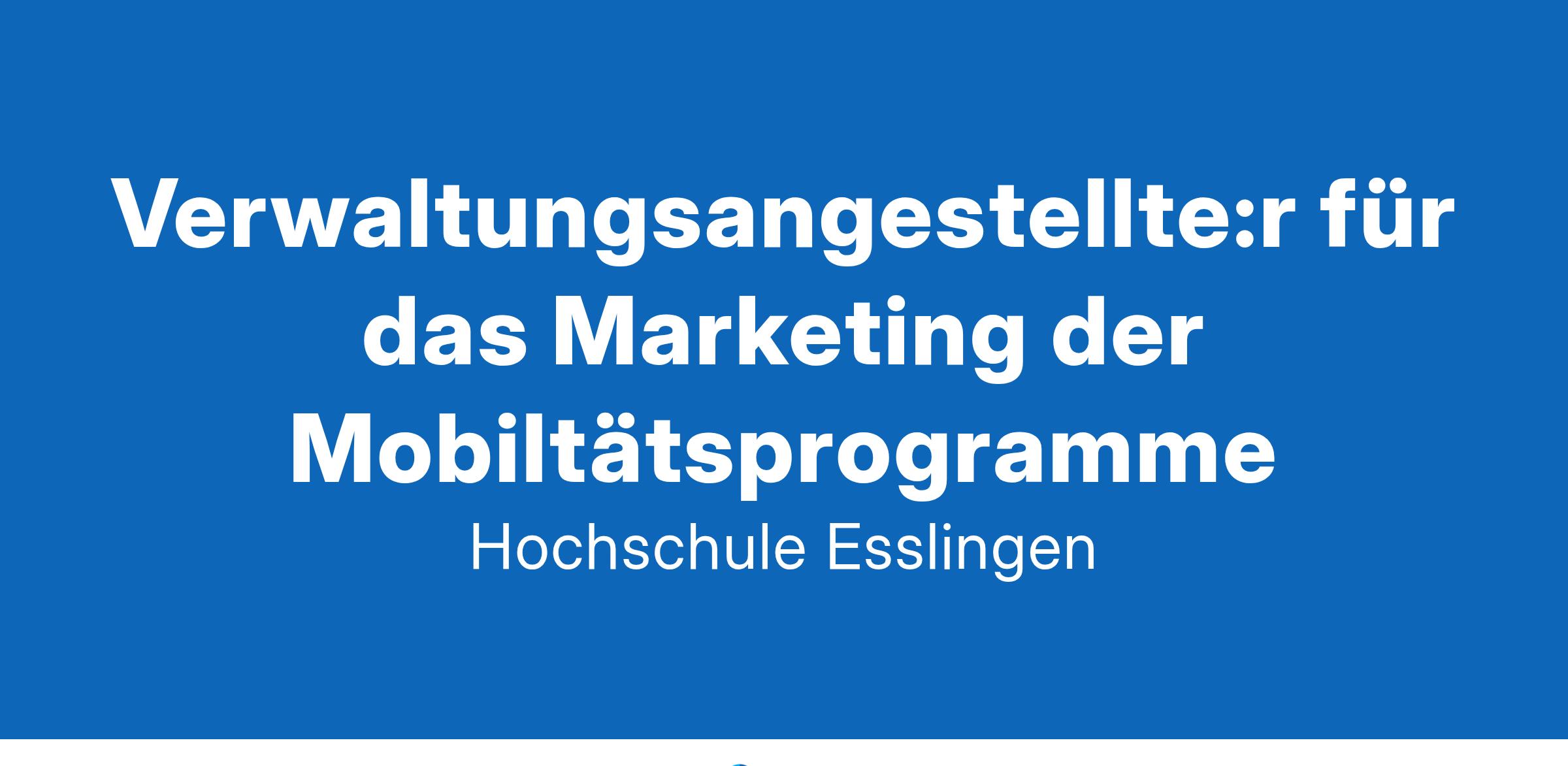 Die Stelle ist in der ZWE IC im „International Office“ angesiedelt. Der Aufgabenbereich umfasst alle Aspekte des Auslands- und Inlandsmarketings für die Mobilitätsprogramme für Studierende aus sowie nach Europa und Übersee. Ziel ist die Steigerung der Mobilitätszahlen im Bereich der Studierendenmobilität, einhergehend mit der konzeptionellen Entwicklung neuer Werbemittel und zur Unterstützung der strategischen Schwerpunktsetzung der Hochschule Esslingen.