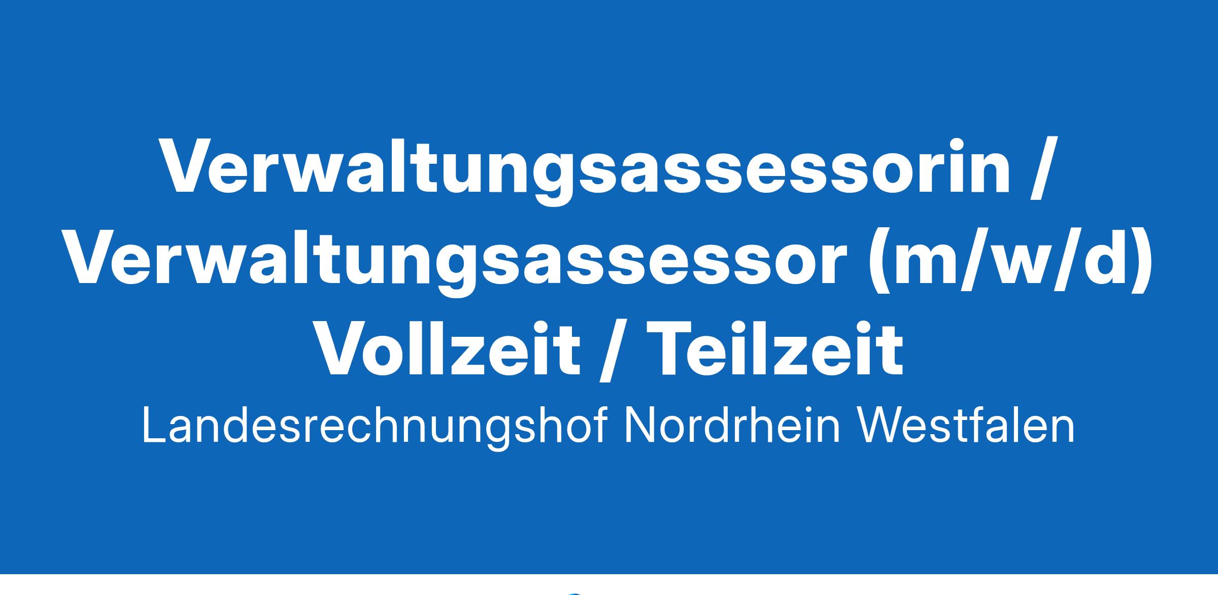 Verwaltungsassessorin / Verwaltungsassessor (m/w/d) Sie haben Interesse an finanzwirtschaftlichen Themen und der Haushaltslage des Landes? Sie suchen eine facettenreiche Tätigkeit, in der sie Projekte mitgestalten können? Ihre Tätigkeit soll Außenwirkung haben? Dann sind Sie als Prüferin / Prüfer der Laufbahngruppe 2.2 im (Haushalts-)Prüfungsgebiet III B des Landesrechnungshofs genau richtig! Wie werden Sie für uns tätig? Sie wirken an der Vorbereitung von Beiträgen zum Jahresbericht des Landesrechnungshofs mit. bereiten Stellungnahmen des Landesrechnungshofs zu Haushaltsgesetzentwürfen vor. bereiten haushaltsrechtliche Themen für hausinterne Gremien auf. planen und konzipieren gemeinsam mit anderen im Team unsere Prüfungen und führen diese im Team durch. Was erwartet Sie? Eine anspruchsvolle und sehr abwechslungsreiche Tätigkeit in einem interdisziplinären Team, ein familienfreundliches Arbeitsumfeld mit flexiblen Homeoffice-Möglichkeiten und Fortbildungsangeboten, ein sicheres, konjunkturunabhängiges Beschäftigungs- bzw. Beamtenverhältnis mit Beförderungsmöglichkeiten bis A 15 und vielfältige Entwicklungsmöglichkeiten in einer fachlich breit aufgestellten obersten Landesbehörde. Was bringen Sie mit? Den Abschluss des Verwaltungsreferendariats mit mindestens der Note „befriedigend“, ein abgeschlossenes Studium (konsekutiver Master / Diplom / Magister) der Wirtschaftswissenschaften, idealerweise Volkswirtschaftslehre mit Schwerpunkt Makroökonomik, mehrere Jahre Berufserfahrung, idealerweise in der öffentlichen Verwaltung, eine strukturierte, eigenständige und wissenschaftliche Arbeitsweise sowie die Fähigkeit zu strategischem Denken, die Bereitschaft, sich schnell, eigeninitiativ und vertieft in haushaltsrechtliche und finanzwirtschaftliche Fragestellungen einzuarbeiten, eine sehr gute schriftliche und mündliche Ausdrucksweise und Teamfähigkeit sowie die Bereitschaft zu gelegentlichen Dienstreisen. Sofern Sie im öffentlichen Dienst sind haben Sie eine unbefristete Stelle bis zur Besoldungsgruppe A 14 inne; die Einstellung kann auch als Tarifbeschäftigte/r erfolgen. Unterstützen Sie den Landesrechnungshof bei seinen verantwortungsvollen Aufgaben und bewerben Sie sich bis zum 24.01.2025 online über Interamt. Gerne steht Ihnen für weitere Fragen zu Ihrem künftigen Einsatzgebiet und Ihren Aufgaben der Referatsleiter, Herr Dr. Rückert, unter (0211) 3896-451 zur Verfügung. Weitere Hinweise zum Bewerbungsverfahren Einzusendende Bewerbungsunterlagen tabellarischer Lebenslauf mit ausführlichem beruflichem Werdegang Abschlusszeugnisse des entsprechenden Studiums Schulabschlusszeugnisse und ggf. sonstige Qualifikationsnachweise sowie Beurteilungen über die bisherigen Tätigkeiten letzte Ernennung sowie Einverständniserklärung zur Einsichtnahme in die Personalakte Ihre Bewerbung mit den Unterlagen können Sie auch schriftlich auf dem Postweg an die Präsidentin des Landesrechnungshofs Nordrhein Westfalen, Konrad Adenauer Platz 13, 40210 Düsseldorf, richten. Bitte achten Sie in diesem Fall darauf, dass Sie keine Originaldokumente einreichen. Eine Bewerbungsmappe ist nicht erforderlich. Bei verfahrenstechnischen Fragen im Zusammenhang mit Ihrer Bewerbung wenden Sie sich bitte an Herrn Kowollik unter: (0211) 3896 380. Allgemeine Hinweise Das Land Nordrhein Westfalen und der Landesrechnungshof Nordrhein Westfalen fördern die berufliche Entwicklung von Frauen. Bewerbungen von Frauen sind daher ausdrücklich erwünscht. In Bereichen, in denen Frauen unterrepräsentiert sind, werden sie bei gleicher Eignung, Befähigung und fachlicher Leistung bevorzugt eingestellt, sofern nicht in der Person eines Mitbewerbers liegende Gründe überwiegen. Bewerbungen schwerbehinderter und ihnen gleichgestellter behinderter Menschen im Sinne von § 2 SGB IX sind erwünscht. Die Ausschreibung richtet sich ausdrücklich auch an Menschen mit Einwanderungsgeschichte. Die Vereinbarkeit von Beruf und Familie ist für den Landesrechnungshof Nordrhein Westfalen ein wichtiges Anliegen. Unter Berücksichtigung der Anforderungen an die ausgeschriebenen Stellen sind Teilzeitmodelle daher grundsätzlich möglich. Hinweis zum Datenschutz Eine verschlüsselte Übermittlung Ihrer Bewerbung per E Mail ist derzeit beim Landesrechnungshof Nordrhein-Westfalen nicht möglich. Bei datenschutzrechtlichen Bedenken haben Sie daher die Möglichkeit, sich auch auf dem Postweg zu bewerben. Es werden nur die persönlichen Daten von Ihnen erhoben, die zur ordnungsgemäßen Durchführung des Bewerbungsverfahrens erforderlich sind. Ihre Daten werden zudem nur weiterverarbeitet, wenn es zu einer Begründung eines Beschäftigungsverhältnisses kommt. Wir behandeln Ihre personenbezogenen Daten vertraulich und entsprechend der gesetzlichen Datenschutzvorschriften, insbesondere der Datenschutz Grundverordnung (DSGVO) und dem Datenschutzgesetz Nordrhein Westfalen (DSG NRW) sowie der unter Datenschutz – Landesrechnungshof Nordrhein-Westfalen (nrw.de) abrufbaren Datenschutzerklärung des Landesrechnungshofs Nordrhein Westfalen. Bei weiteren Fragen erreichen Sie die Datenschutzbeauftragte des Landesrechnungshofs Nordrhein Westfalen per E Mail unter Beauftragte.Datenschutz@lrh.nrw.de oder über die Adresse: Landesrechnungshof Nordrhein Westfalen, Behördliche Datenschutzbeauftragte, Konrad Adenauer Platz 13, 40210 Düsseldorf, sowie telefonisch unter (0211) 3896 0.