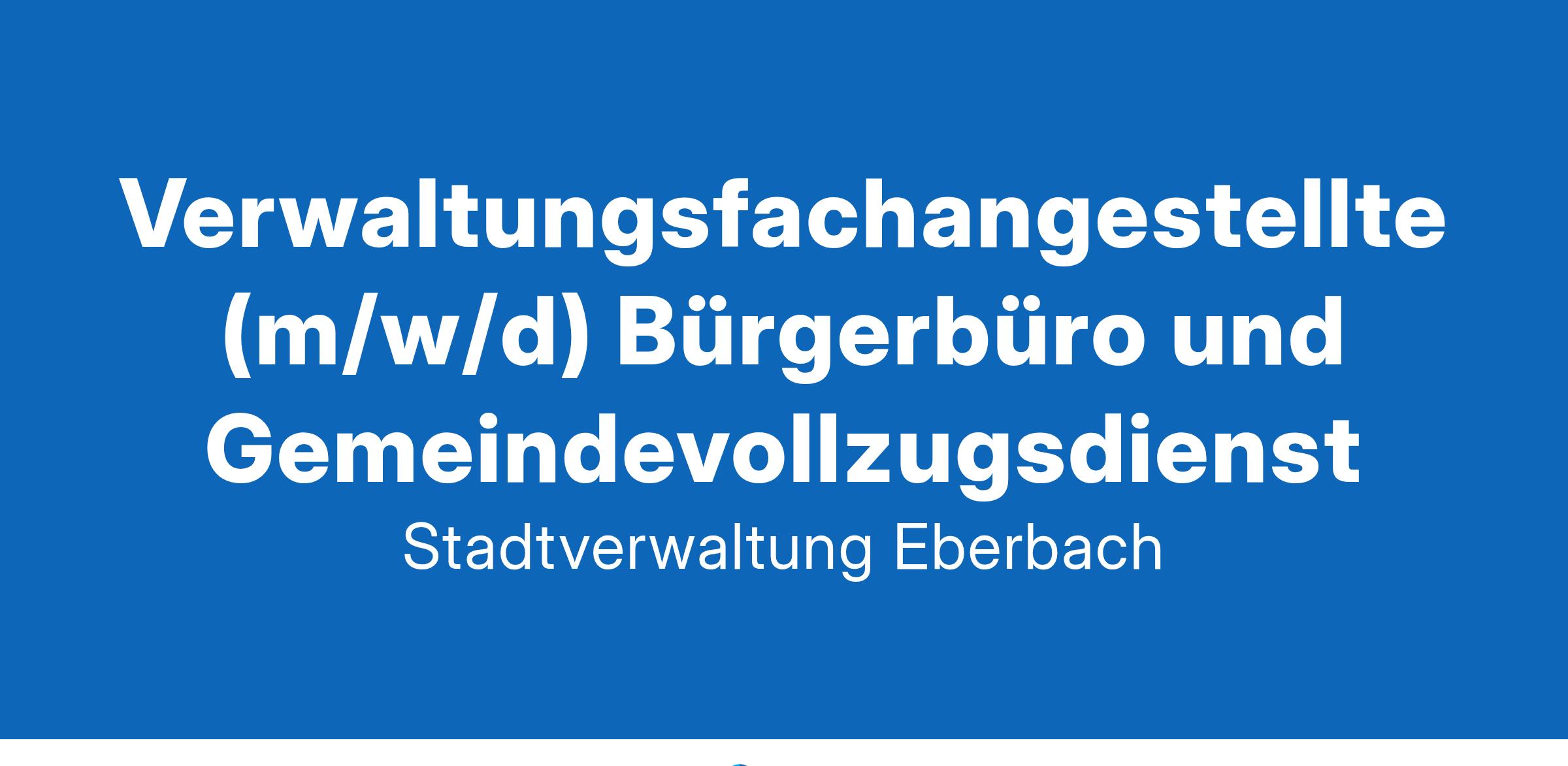 Verwaltungsfachangestellte (m/w/d) Bürgerbüro und Gemeindevollzugsdienst Die Stadt Eberbach am Neckar sucht zum nächstmöglichen Zeitpunkt mehrere Verwaltungsfachangestellte (m/w/d) Bürgerbüro und Gemeindevollzugsdienst- Vollzeit (39 Std./Woche), unbefristet Die Stadt Eberbach liegt im Norden Baden-Württembergs, rund 32 Kilometer östlich von Heidelberg, im Rhein-Neckar- Kreis am Neckar. Sie gehört zur europäischen Metropolregion Rhein-Neckar und führt den Namenszusatz Stauferstadt. Eberbach hat rund 14.500 Einwohnerinnen und Einwohner in der Kernstadt sowie den fünf Stadtteilen. Die ausführlichen Stellenbeschreibungen finden Sie unter www.eberbach.de/rathaus/verwaltung/karriere oder einfach den QR-Code scannen Stadtverwaltung Eberbach | Personalamt | Leopoldsplatz 1 | 69412 Eberbach Tel.: 06271 / 87-208 | E-Mail: personalamt@eberbach.de | www.eberbach.de