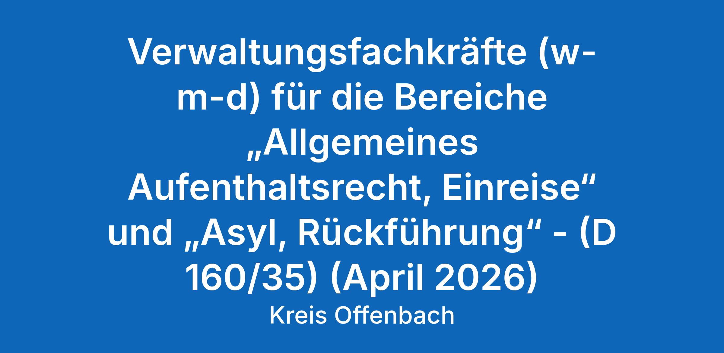 Verwaltungsfachkräfte (w-m-d) für die Bereiche „Allgemeines Aufenthaltsrecht, Einreise“ und „Asyl, Rückführung“