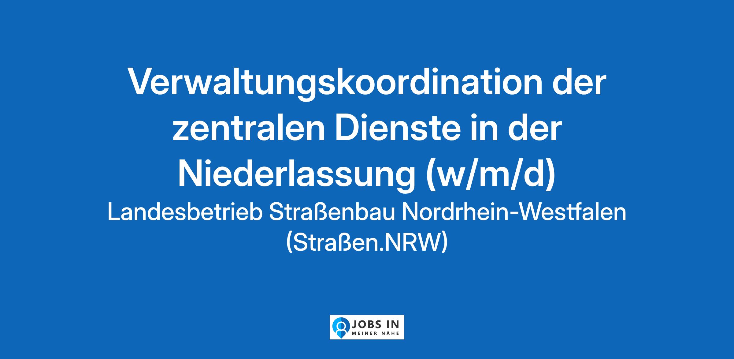 Der Landesbetrieb Straßenbau Nordrhein-Westfalen (Straßen.NRW) sucht zum nächstmöglichen Zeitpunkt für den Standort Region I NL Sauerland-Hochstift, für den Dienstort Meschede mit Einsatzort Region I RNL Sauerland-Hochstift in Teilzeit, Vollzeit mit einem Beschäftigungsumfang von 100 % eine Verwaltungskoordination der zentralen Dienste in der Niederlassung (w/m/d).