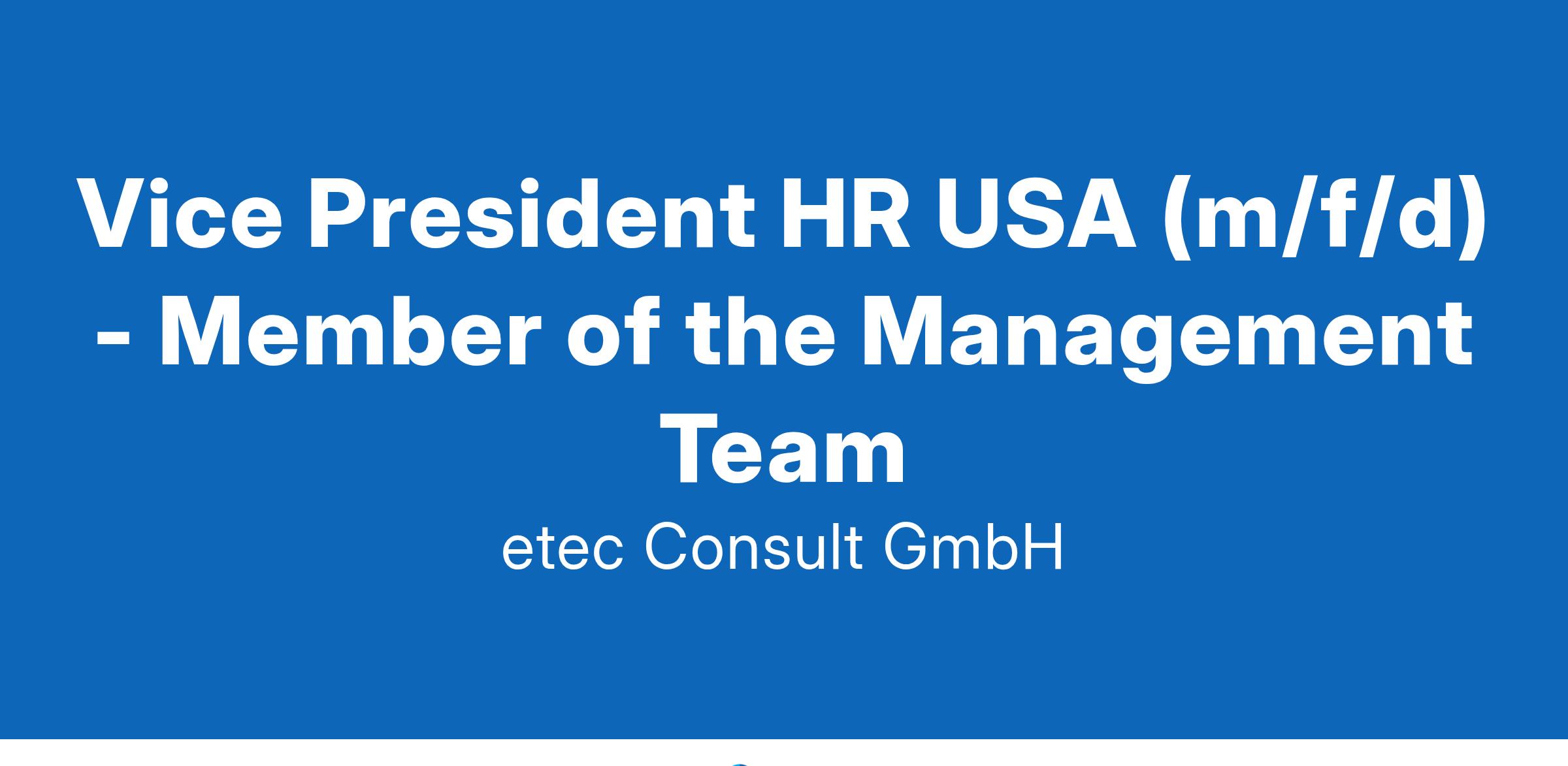 Vice President HR USA (m/f/d) - Member of the Management Team
