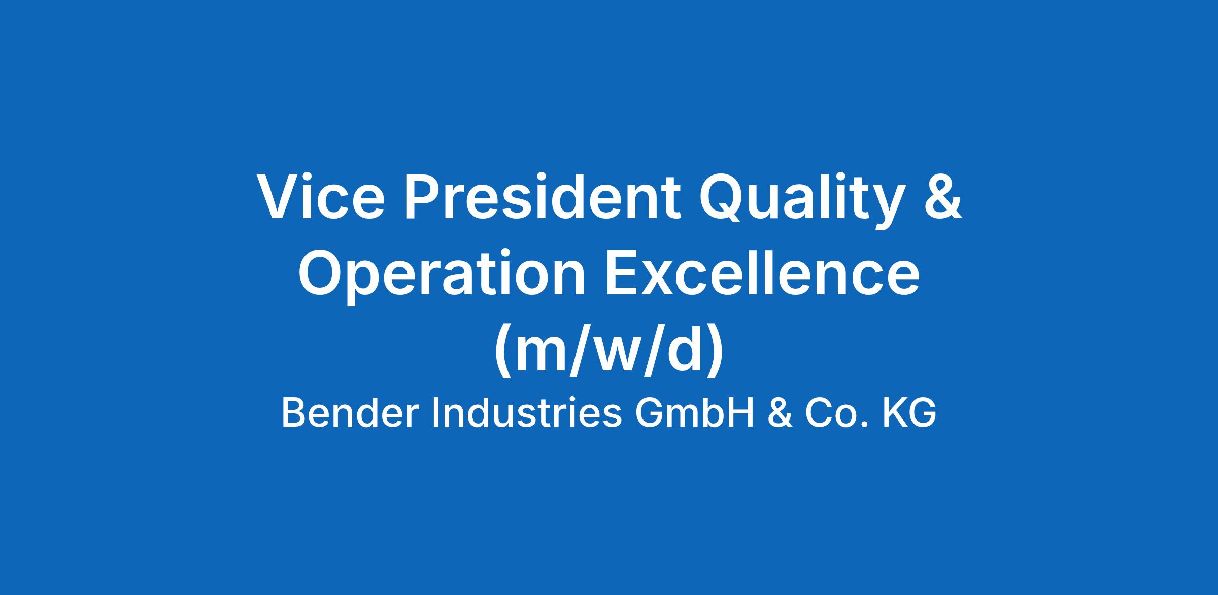 Vice President Quality & Operational Excellence (m/w/d)