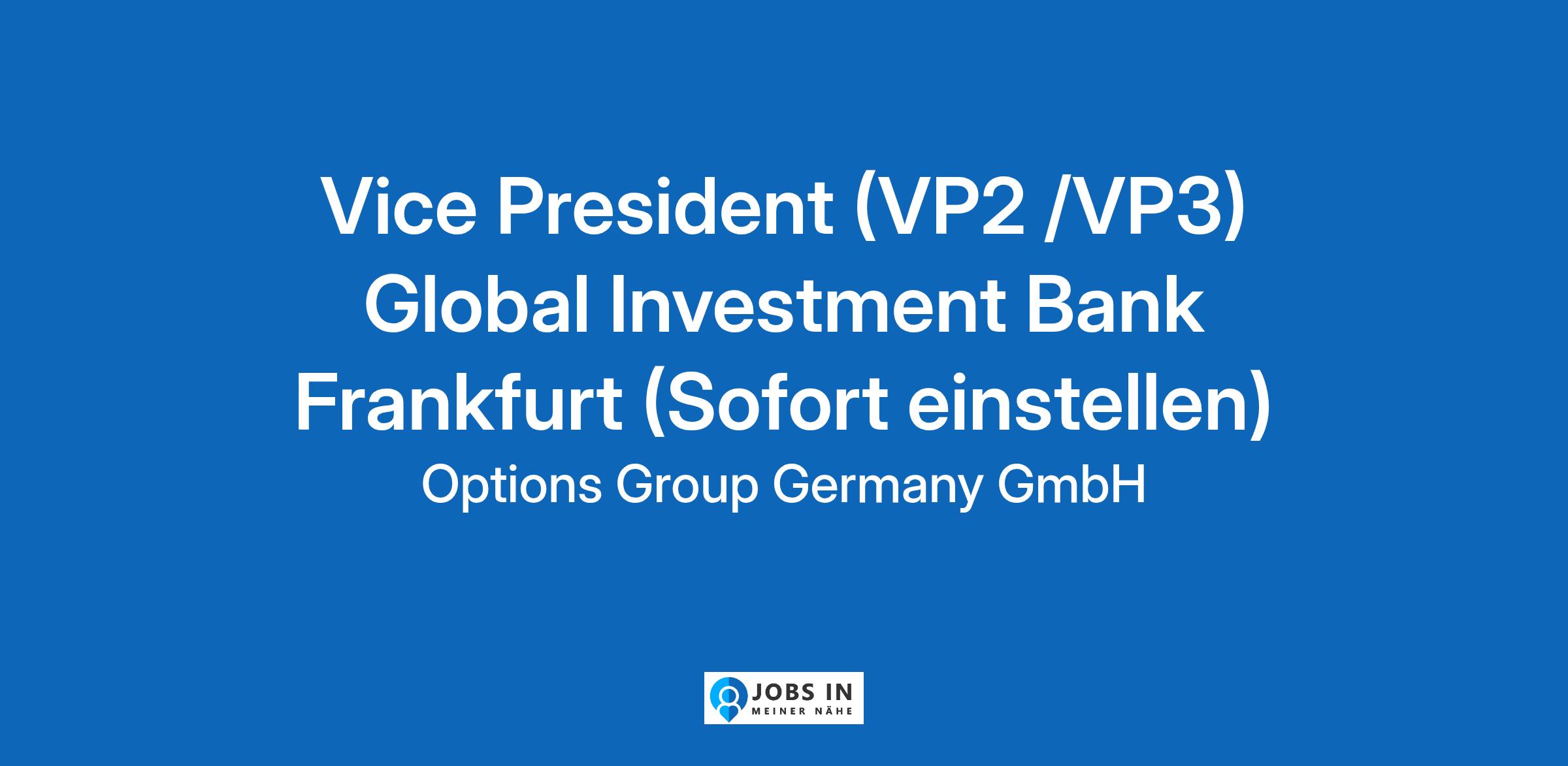 For our client, a globally successful investment bank, we are looking for a Vice President to join their team in Frankfurt. This is an excellent opportunity to develop your career within a global organisation with a strong track record.