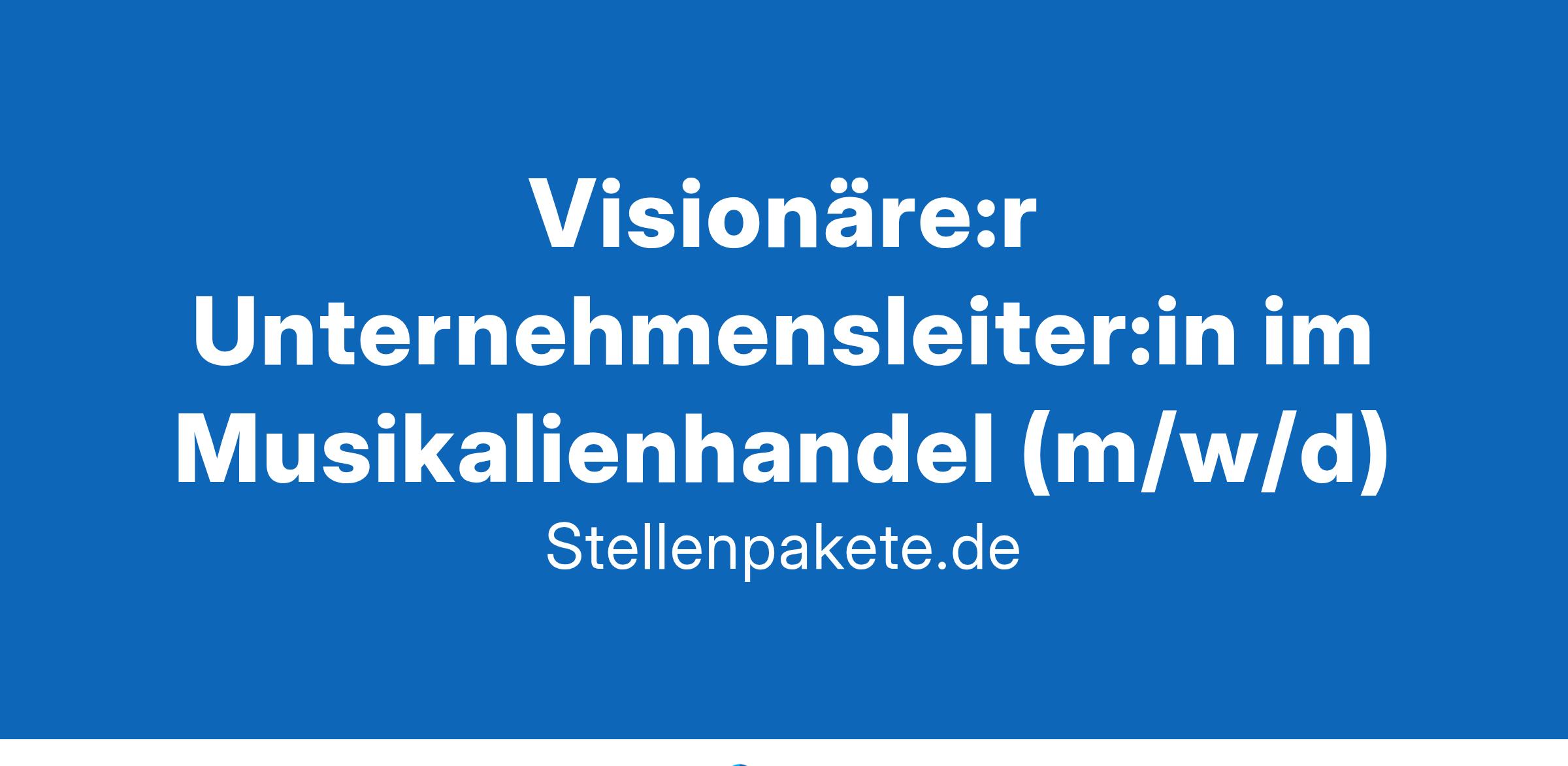 Gestalten Sie die Zukunft – mit uns. Wir sind ein etabliertes mittelständisches Unternehmen im Musikalienhandel mit rund 350 Mitarbeitenden, das Tradition und Innovation erfolgreich miteinander verbindet. Als renommierter Anbieter in der Branche des Musikalienhandels stehen wir für höchste Qualität und Kundenzufriedenheit. Im Zuge unserer weiteren Entwicklung suchen wir eine unternehmerisch denkende und engagierte Persönlichkeit, die unsere strategischen und operativen Ziele maßgeblich mitgestaltet und umsetzt.Ihre Aufgaben: Strategische und operative Führung des Unternehmens mit Fokus auf nachhaltiges Wachstum und Marktpositionierung Verantwortung für Umsatz- und Ergebnisentwicklung sowie die Erreichung wirtschaftlicher Zielvorgaben Entwicklung und Umsetzung von Innovationsstrategien zur Weiterentwicklung des Produktportfolios und der Geschäftsmodelle Analyse von Markttrends und Kundenbedürfnissen, um zukunftsweisende Lösungen zu entwickeln Steuerung und Optimierung der internen Prozesse entlang der gesamten Wertschöpfungskette Führung, Motivation und Weiterentwicklung der Mitarbeitenden in einer offenen und wertschätzenden Unternehmenskultur Repräsentation des Unternehmens nach außen und Aufbau sowie Pflege von Geschäftspartnerschaften Das bringen Sie mit: Mehrjährige, fundierte Berufserfahrung in der Musikinstrumenten-Branche Erfahrung und Expertise im Bereich E-Commerce, insbesondere in der Entwicklung und Umsetzung digitaler Vertriebsstrategien Umfassende Produktkenntnisse und ein tiefes Verständnis für die Bedürfnisse der Zielgruppe Langjährige Erfahrung in einer leitenden Position mit nachweisbaren Erfolgen in der Unternehmensführung Ausgeprägtes unternehmerisches Denken und Entscheidungsfreude Hohes Maß an Kommunikationsstärke sowie die Fähigkeit, Menschen zu begeistern und Veränderungen aktiv zu gestalten Einen akademischen Abschluss, idealerweise mit Schwerpunkt Management oder Betriebswirtschaft, oder eine vergleichbare Qualifikation Gute Englischkenntnisse sowie ein sicherer Umgang mit modernen Technologien und Tools Das bieten wir Ihnen: Eine herausfordernde und verantwortungsvolle Position mit großem Gestaltungsspielraum Ein attraktives Vergütungspaket, inklusive leistungsorientierter Boni Die Möglichkeit, die strategische Ausrichtung eines erfolgreichen Unternehmens entscheidend zu prägen Ein dynamisches und kollegiales Arbeitsumfeld mit einem hochmotivierten Team Zugang zu Weiterbildungsangeboten und Führungskräftenetzwerken KontaktKontakt Wir freuen uns auf Ihre Bewerbung und stehen Ihnen bei Fragen gerne zur Verfügung! Jetzt bewerben