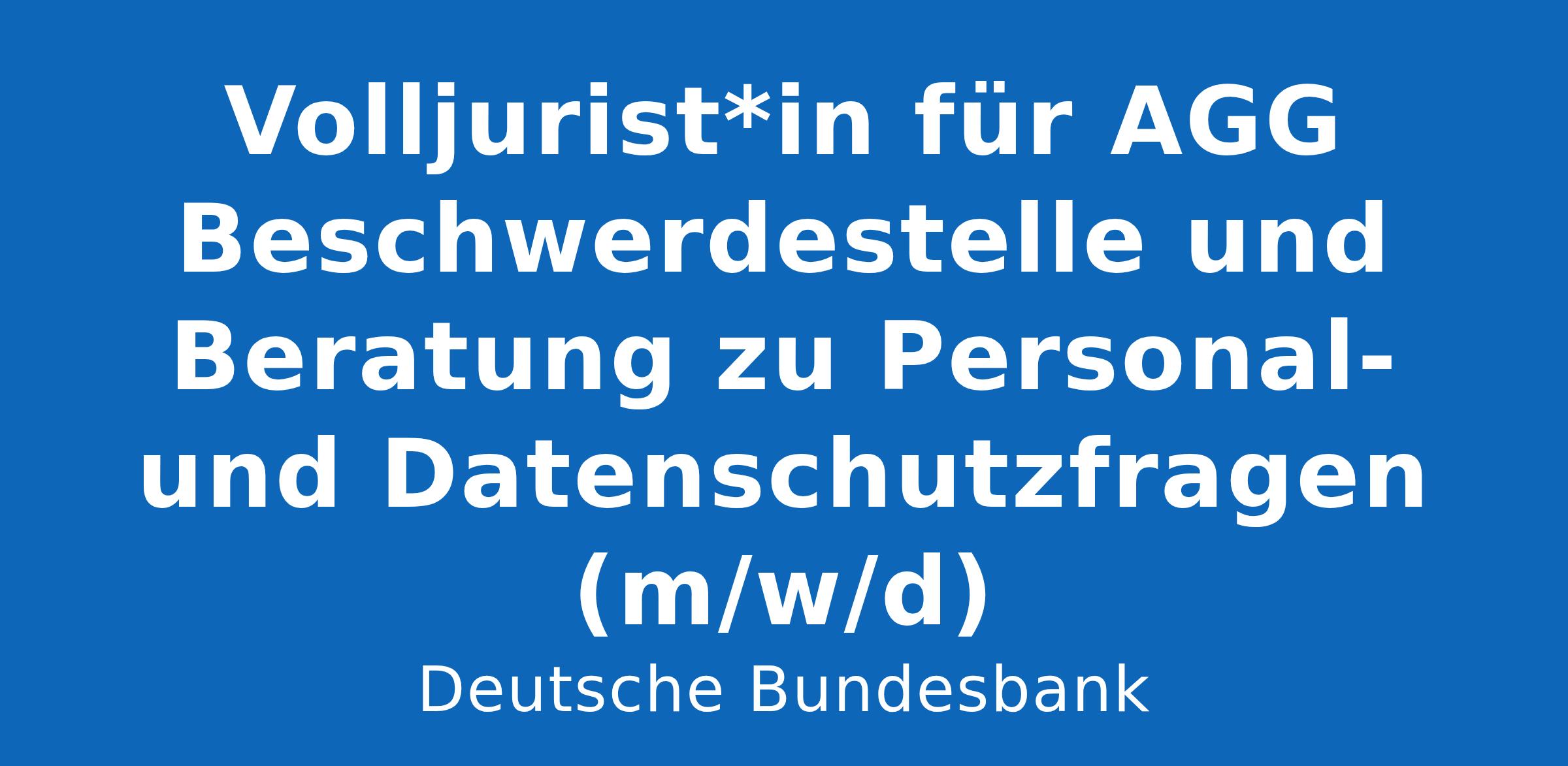 Die Deutsche Bundesbank ist eine besondere Bank. Wir sorgen mit der EZB und den anderen europäischen Zentralbanken für einen stabilen Euro. Dafür und für weitere Zentralbankaufgaben brauchen wir eine große Vielfalt von Spezialistinnen und Spezialisten in den verschiedensten Arbeitsbereichen, damit die Institution funktionieren kann. Werden auch Sie Teil eines starken Teams aus zuverlässigen und verantwortungsbewussten Menschen! Volljurist*in für AGG Beschwerdestelle und Beratung zu Personal- und Datenschutzfragen Arbeitsort: Frankfurt am Main Anstellung: Vollzeit (grundsätzlich teilzeitfähig) Beginn: ab sofort Stellen-ID: 2025_0059_02 Wir suchen Sie für unser Team Beschwerdestelle nach dem Allgemeinen Gleichbehandlungsgesetz (AGG) in der Stabsstelle der Abteilung Interne Personaldienste. Arbeit von besonderem Wert: Ihr Einsatz bei uns Sie bearbeiten eingehende Beschwerden nach dem AGG bzw. der Leitlinie für partnerschaftliches Verhalten und führen Gespräche mit den Beteiligten zur Sachverhaltsermittlung und –bewertung. In Ihr Aufgabengebiet fällt auch die Koordination des Erfahrungsaustauschs der Ansprechpersonen für Partnerschaftliches Verhalten an den verschiedenen Standorten der Deutschen Bundesbank einschl. der Organisation und Durchführung von gemeinsamen Fortbildungen. Sie konzipieren und übernehmen zu diesen Themen Schulungen und entwickeln Lern-Formate. Sie übernehmen die interne Beratung zu rechtlichen Aspekten von Personalthemen wie Bezüge, Versorgung, Gesundheit, Zeitwirtschaft, Reisekosten und Beihilfe (z. B.: Prüfung von Verträgen, Formularen, Drittschuldnererklärungen, Widersprüchen) und arbeiten dabei eng mit den Kolleginnen und Kollegen des Rechtsbereichs zusammen. Sie wirken in Arbeitsgruppen der Bank mit rechtlichem Bezug mit. Sie bearbeiten datenschutzrechtliche Anfragen, wie etwa Auskunftsersuchen, und beraten die Kolleginnen und Kollegen des Personalbereichs zu Datenschutzfragen. Besondere Werte: Ihre Qualifikationen Erstes und zweites juristisches Staatsexamen, davon mindestens eins abgeschlossen mit mindestens 9 Punkten Kenntnisse des Allgemeinen Gleichbehandlungsgesetzes sowie weiterer relevanter Rechtsgebiete (Beamtenrecht, Arbeitsrecht, Vertragsrecht, Datenschutzrecht) erforderlich Mindestens 2-jährige Erfahrungen in der Bearbeitung von Beschwerdefällen und Sachverhaltsermittlungen Ausbildung zur/zum Mediator*in, Zertifizierung als Coach für gewaltfreie Kommunikation oder ähnliche nachgewiesene Zusatzkenntnisse (z. B. motivational interviewing, Konfliktmanagement) sind von Vorteil Sehr gute Kommunikationsfähigkeiten in deutscher Sprache Konfliktbewältigungs- und Verhandlungsgeschick Empathie und ausgeprägte emotionale Neutralität Wertvolle Arbeit verdient besondere Vorteile Vergütung & Perspektiven Vergütung in Anlehnung an den TVöD zzgl. Bankzulage, zukunftsorientierter Arbeitsplatz im öffentlichen Dienst mit verlässlichen Arbeitsbedingungen, abwechslungsreiche Aufgaben, grundsätzliche Verbeamtungsmöglichkeit, umfangreiches Weiterbildungsangebot New Work Umfangreiche Möglichkeit auf Homeoffice-Möglichkeiten innerhalb von Deutschland (grundsätzlich bis zu 60 % der Arbeitszeit), gute technische Ausstattung (z. B. Smartphone, Notebook), Feedback-Kultur, flexible und planbare Arbeitszeiten, Work-Life-Balance Zusatzleistungen Kostenloses Deutschlandticket als Jobticket, zentrale Lage, betriebliches Gesundheitsmanagement, Betriebskita bzw. Betreuungsangebote, Betriebsrestaurant Wollen Sie unser Team bereichern? Dann sind wir schon sehr gespannt auf Ihre Bewerbung. Falls Sie im Voraus noch Fragen haben, wenden Sie sich einfach an die zuständige Ansprechperson. I hre Fragen zum Aufgabengebiet Frank Baumann, (Inhalt entfernt) 9566-38236, (Inhalt entfernt) Carina Keil, (Inhalt entfernt) 9566-38234, (Inhalt entfernt) Bitte bewerben Sie sich bis zum 12.02.2025 mit der Stellen-ID 2025_0059_02 über unser Online-Tool. JETZT BEWERBEN! Vielfalt und Chancengleichheit sind uns wichtig. Schwerbehinderte Menschen werden bei gleicher Eignung bevorzugt berücksichtigt. Auch fördert die Deutsche Bundesbank die berufliche Gleichstellung von Frauen und Männern insbesondere bei der Besetzung von Führungspositionen. Daher begrüßen wir besonders Bewerbungen von Frauen.