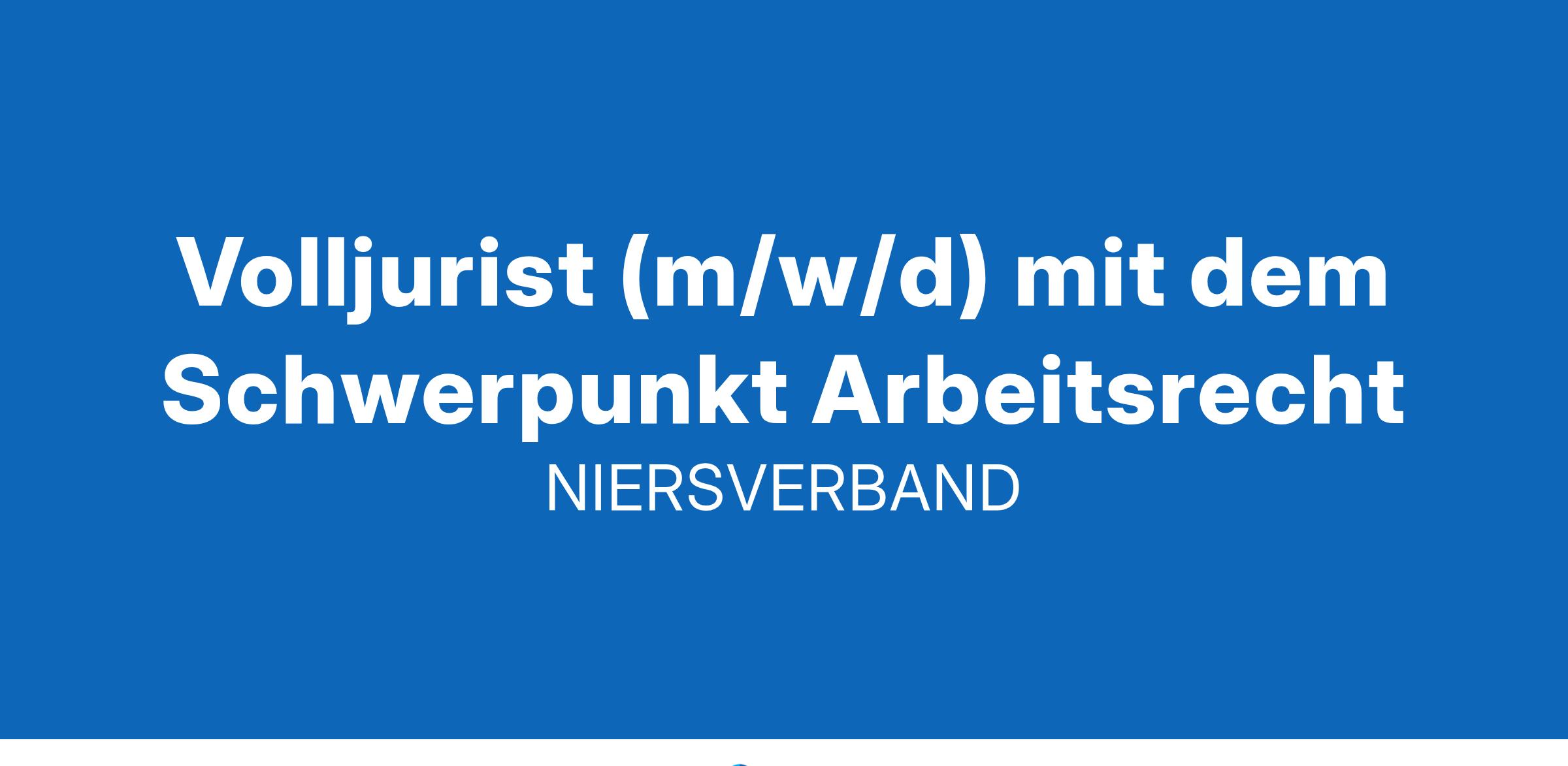 Volljurist (m/w/d) mit dem Schwerpunkt Arbeitsrecht Als Körperschaft des öffentlichen Rechts gehören wir zu den überregionalen Trägern der Wasserwirtschaft in Nordrhein-Westfalen. Zum nächstmöglichen Zeitpunkt sucht unsere Abteilung Personal und Soziales unbefristet, in Vollzeit (39,0 Std./Wo) einen Volljurist (m/w/d) mit dem Schwerpunkt Arbeitsrecht In unserer Personalabteilung bieten wir Ihnen eine spannende und verantwortungsvolle Tätigkeit als Jurist*in für Arbeitsrecht. Ihre Aufgaben: Sie unterstützen die Abteilungsleitung bei der Bearbeitung sämtlicher Fragen des Individual- und Kollektivarbeitsrechts, einschließlich der Koordinierung externer juristischer Beratung. Sie unterstützen die Abteilungsleitung bei der Erstellung neuer und der Überarbeitung bereits bestehender Dienstvereinbarungen und Dienstanweisungen. Sie wirken an Projekten und der kontinuierlichen Verbesserung hinsichtlich von Praktiken und Prozessen im Personalwesen mit. Sie kümmern sich federführend um die Erstellung und Überarbeitung von Stellenbeschreibungen und führen Stellenbewertungen selbständig auf Grundlage des TV-WW/NW durch. Sie arbeiten konstruktiv und vertrauensvoll mit verschiedenen Gremien im Haus zusammen. Ihr Profil: Sie haben eine abgeschlossene juristische Ausbildung (Volljurist). Sie verfügen über fundierte Kenntnisse im individuellen und kollektivem Arbeitsrecht. Sie besitzen analytische Fähigkeiten und Falllösungskompetenzen, um komplexe Sachverhalte zu erfassen und rechtlich sorgfältig einzuordnen. Darüber hinaus haben Sie Freude an der Lösung komplexer Rechtsprobleme. Sie zeichnen sich durch eine selbständige Arbeitsweise, Teamfähigkeit, Diskretion, Sorgfalt und Verantwortungsbewusstsein aus. Ihre Persönlichkeit ist gekennzeichnet durch sicheres Auftreten, Verhandlungsgeschick sowie schriftliche und mündliche Kommunikationsstärke. Wünschenswert: Sie bringen vorzugsweise Berufserfahrung in den oben genannten Aufgabenbereichen mit. Die Arbeit im öffentlichen Dienst ist für Sie nicht fremd. Wir bieten: Unbefristete Einstellung Krisensicheren Arbeitsplatz Flexible Arbeitszeitgestaltung Attraktives Prämiensystem E-Bike-Leasing Betriebliche Altersvorsorge Betriebliches Gesundheitsmanagement Beratungsangebote zur Vereinbarkeit von Beruf und Familie Angemessene Einarbeitungsphase Die Einstellung ist in Voll- und Teilzeit möglich. Der Niersverband setzt sich aktiv für die berufliche Gleichstellung von Frauen und Männern ein. Bewerbungen von Frauen sind daher ausdrücklich erwünscht und werden bei gleicher Eignung bevorzugt berücksichtigt. Die Bewerbung geeigneter schwerbehinderter Menschen ist erwünscht. Die Vergütung richtet sich nach dem Tarifvertrag für die Arbeitnehmer/innen der Wasserwirtschaft in Nordrhein-Westfalen (TV-WW/NW). Kontakt: Für Informationen und Rückfragen bezüglich der Aufgaben dieser Stelle steht Ihnen Frau Beate Weber, Tel.: 02162/3704-480 und bezüglich der Rahmenbedingungen des Arbeitsverhältnisses Frau Nadeschda Müller, Tel: 02162/3704-485 gerne zur Verfügung.