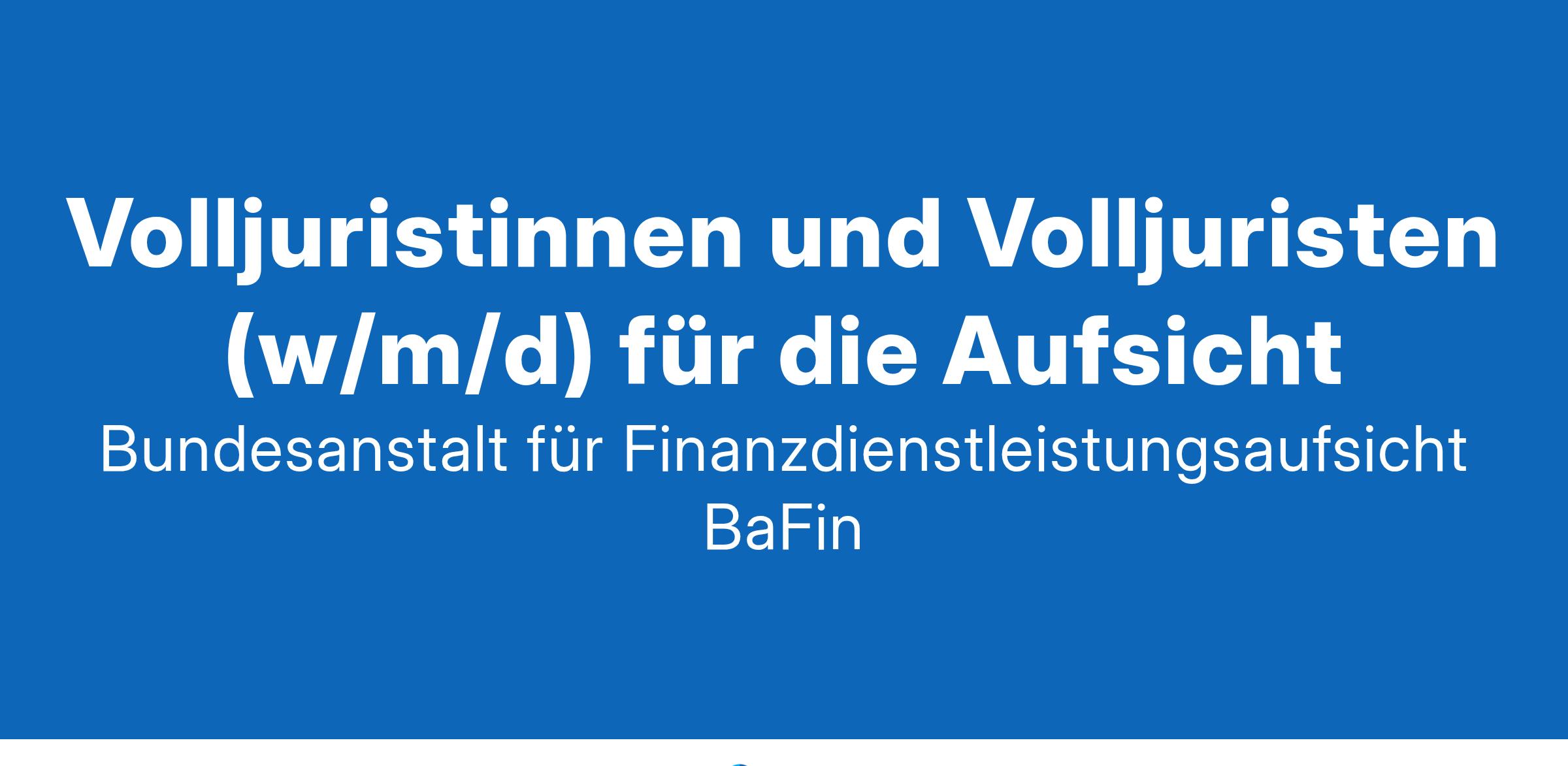 Als Bundesanstalt für Finanzdienstleistungsaufsicht (BaFin) setzen wir uns jeden Tag für ein funktionsfähiges, stabiles und integres Finanzsystem ein – und damit auch für einen wettbewerbsfähigen Finanzplatz Deutschland. Als Aufsichtsbehörde für Banken, Versicherungen, Finanzdienstleister und Wertpapierinstitute agieren wir am Puls der Finanzwirtschaft und schützen Verbraucherinnen und Verbraucher. Als Teil des Einheitlichen Aufsichtsmechanismus und Abwicklungsmechanismus für die Banken der Eurozone sind wir in Europa und weltweit vernetzt und gestalten europäische und internationale Finanzmarktstandards mit. Wir suchen zum nächstmöglichen Zeitpunkt mehrere Volljuristinnen und Volljuristen (w/m/d) für die Aufsicht für eine unbefristete oder auf zwei Jahre befristete Tätigkeit in Vollzeit oder Teilzeit als Referent*in an unserem Dienstsitz in der Bundesstadt Bonn . Sie bearbeiten anspruchsvolle Aufgaben und übernehmen mit zunehmender Erfahrung Verantwortung. Ihr Einsatz erfolgt in einem der folgenden Bereiche: Laufende Aufsicht über Kreditinstitute oder Versicherungsunternehmen, je nach konkreter Zuständigkeit auch mit internationalem Bezug. Abhängig von Ihrer Qualifikation ist auch ein Einsatz im Grundsatzbereich möglich Bekämpfung von Geldwäsche und Terrorismusfinanzierung Verfolgung unerlaubter Geschäfte, insbesondere in Zusammenarbeit mit nationalen und ausländischen Strafverfolgungsbehörden Bearbeitung von Beschwerden der Kund*innen von Banken und Versicherungsunternehmen im Rahmen des kollektiven Verbraucherschutzes Gegebenenfalls ist ein Einsatz in der Zentralen Rechtsabteilung mit Zuständigkeit für juristische Grundsatzfragen und verwaltungsgerichtliche Prozessführung für die gesamte BaFin oder aber im Personalwesen möglich Das bringen Sie mit Sie haben als Volljurist*in mindestens ein "befriedigend" in beiden (Staats-)Prüfungen erreicht und idealerweise verfügen Sie über mehrjährige relevante Berufserfahrung ODER Sie haben als Volljurist*in in einer (Staats-)Prüfung mindestens ein "befriedigend" erreicht (bei der sog. "ersten Prüfung" zählt das Ergebnis der staatlichen Pflichtfachprüfung) und verfügen zwingend über mindestens fünf Jahre einschlägige Berufserfahrung Sie überzeugen Kolleg*innen und Externe aufgrund Ihres wertschätzenden Umgangs sowie Ihrer klar auf die Sache ausgerichteten Vorgehensweise Sie besitzen die digitalen Kompetenzen, um in einem durch Digitalisierung geprägten Umfeld neue Entwicklungen zu verstehen und einzuordnen Sie sind offen für die Arbeit in Projekten bzw. projektären Strukturen und besitzen idealerweise Erfahrungen in Workshop- und Moderationstechniken, agiler Arbeitsweise oder sogar im Projektmanagement Sie haben sehr gute Kenntnisse der englischen Sprache Von Vorteil sind: Berufserfahrung im Finanzsektor oder in der öffentlichen Verwaltung, auch z. B. in Form einer einschlägigen Berufsausbildung Erfahrungen in der Bearbeitung von regulatorischen Fragen und Themen mit Bezug zur Finanzwirtschaft Wir setzen voraus, dass Sie bereit sind, Dienstreisen zu unternehmen. Dienstreisen können auch mehrere Tage dauern, sind aber in der Regel planbar. Das bieten wir Einbindung in ein Team von Spezialist*innen, für die der Informations- und Wissensaustausch selbstverständlich ist Umfassende Einarbeitung in Abhängigkeit von Ihrer persönlichen Erfahrung und individuelle Qualifizierungsmöglichkeiten (z. B. Englischkurse, Fachseminare) Die Möglichkeit, innerhalb Ihres Aufgabenbereichs eigenverantwortlich zu agieren Flexible Arbeitszeitgestaltung (Gleitzeit mit Freizeitausgleich, Möglichkeit zur Teilzeit) Mobiles Arbeiten mit grds. 40 % Mindest-Präsenz im Büro Umfangreiche Sozialleistungen und Benefits (u. a. vergünstigtes Jobticket, Kantinen-Nutzung, kostenlose Parkplätze, eigene Kindertagesstätte, betriebliche Altersversorgung für Angestellte über die VBL) Eine Einstellung im öffentlichen Dienst nach Entgeltgruppe 13 TVöD – zuzüglich einer Stellenzulage und Weihnachtsgeld Die grundsätzliche Möglichkeit einer Verbeamtung; es können sich auch Beamt*innen des höheren Dienstes bis Besoldungsgruppe A 14 BBesO bewerben Die Möglichkeit einer vorübergehenden Verwendung außerhalb der BaFin auf nationaler und europäischer Ebene, z. B. beim BMF, der EZB oder den Europäischen Aufsichtsbehörden Wir freuen uns auf Ihre aussagekräftige Bewerbung bis zum 31.01.2025 unter der Kennzahl (Inhalt entfernt) . Ihre Bewerbung richten Sie bitte als eine Datei im PDF-Format an: (Inhalt entfernt) . Führen Sie darin insbesondere bitte aus, inwieweit Sie das Anforderungsprofil erfüllen, und fügen Sie Ihren Lebenslauf, Nachweise der erforderlichen Abschlüsse sowie Ihnen vorliegende Arbeitszeugnisse bzw. Beurteilungen bei. Gerne können Sie sich schon ohne Zweites Staatsexamen bewerben. Allerdings müssen Sie das Examen innerhalb von sechs Monaten nach Ablauf dieser Ausschreibung erfolgreich abschließen. Es reicht aus, wenn Sie dann ein vorläufiges Zeugnis vorlegen, aus dem sich die Abschlussnote ergibt. Bei Fragen zum Bewerbungsverfahren kontaktieren Sie bitte Herrn Weiß (0228/4108-2100). Die BaFin fördert die berufliche Gleichstellung von Frauen und Männern. Bewerbungen von Frauen sind besonders erwünscht. Sie werden nach Maßgabe des Bundesgleichstellungsgesetzes bevorzugt berücksichtigt. Schwerbehinderte Menschen sind in der BaFin willkommen und werden im Falle gleicher Eignung nach Maßgabe des SGB IX bevorzugt berücksichtigt. Bewerbungen von Menschen mit Migrationshintergrund sind ausdrücklich erbeten. Hinweise zum Datenschutz erhalten Sie unter (Inhalt entfernt).