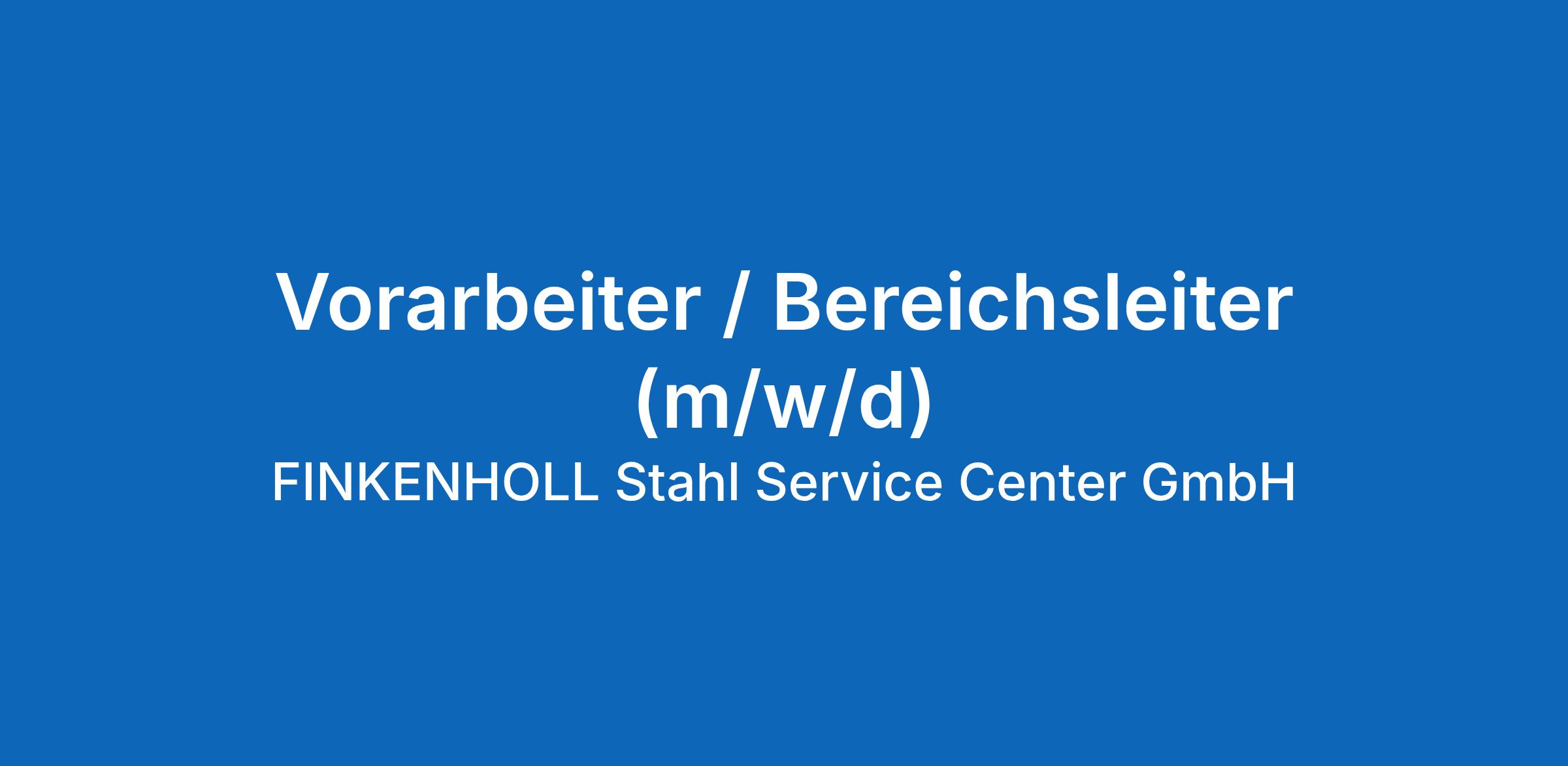 Die FINKENHOLL Stahl Service Center GmbH mit Sitz in Bochum sucht zum nächstmöglichen Zeitpunkt für ihr Warenlager / Betrieb einen zuverlässigen Mitarbeiter (m/w/d).