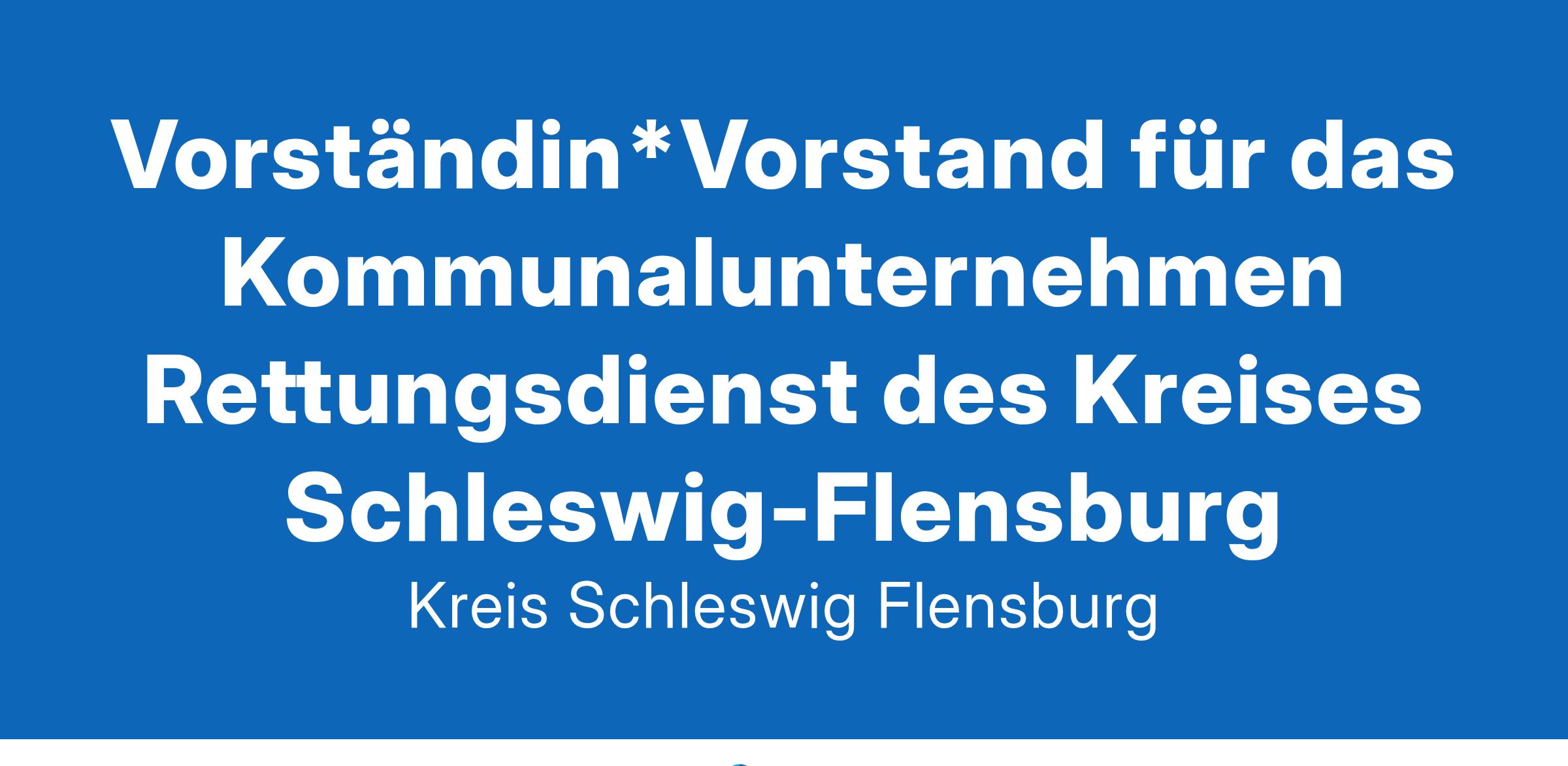 Vorständin*Vorstandfür das Kommunalunternehmen Rettungsdienst des Kreises Schleswig-Flensburg - Anstalt des öffentlichen Rechts (AöR)Das sind Ihre wichtigsten Aufgaben:den Rettungsdienst des Kreises Schleswig-Flensburg (AöR) als Vorständin*Vorstand leiten, dabei