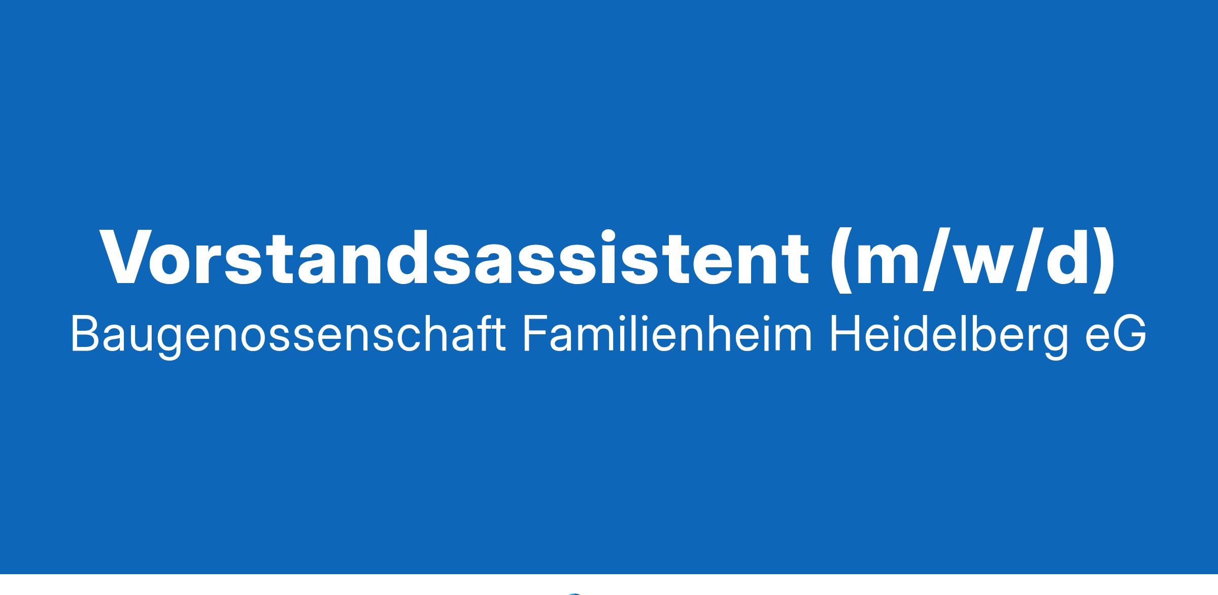 Die Baugenossenschaft Familienheim Heidelberg eG ist seit über 75 Jahren ein leistungsstarker Partner im Immobilienbereich. Wir verwalten, vermieten und betreuen über 1.100 Wohn- und Gewerbeeinheiten in Heidelberg und dem Rhein-Neckar-Kreis. Unsere Werte wie Nachhaltigkeit, Fairness und langfristige Beziehungen prägen nicht nur unseren Umgang mit unseren Mietern und Mitgliedern, sondern auch die Zusammenarbeit im Team. Zur Verstärkung unseres Teams suchen wir zum nächstmöglichen Zeitpunkt Sie als Vorstandsassistentin (m/w/d)