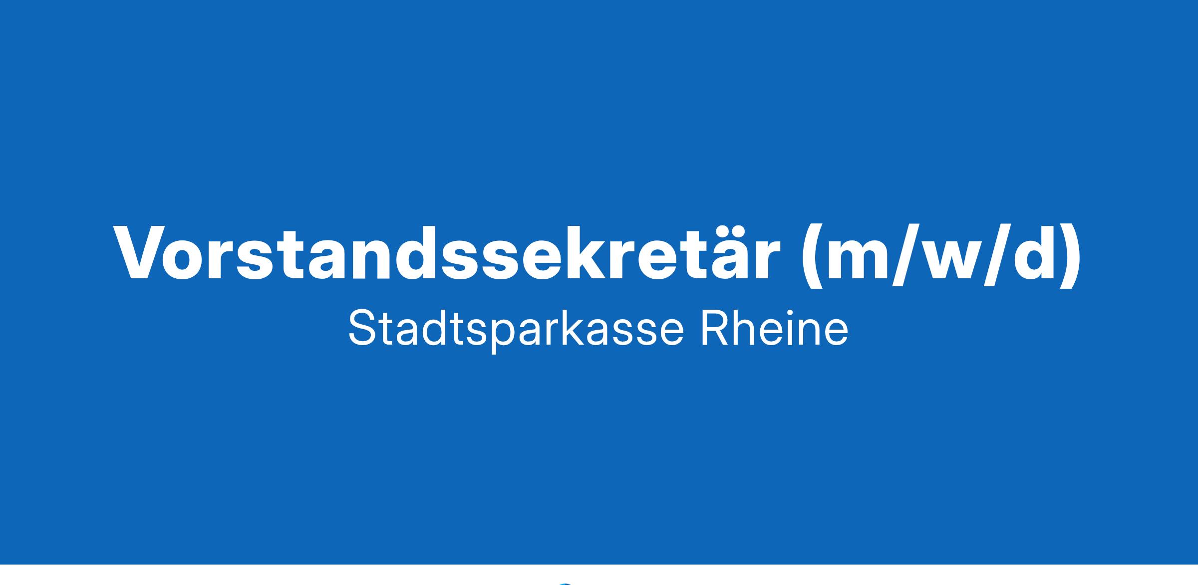 Vorstandssekretär (m/w/d) Stadtsparkasse Rheine Darauf können Sie sich freuen ... Bezahlung nach Tarifvertrag und zusätzliche leistungs- und erfolgsorientierte Vergütung Unbefristeter Vertrag mit zahlreichen Karriereperspektiven und individuellen Möglichkeiten der Fort- und Weiterbildung 32 Urlaubstage, 2 Bankfeiertage sowie Möglichkeit zum Urlaubskauf Kostenloses Girokonto und weitere attraktive Mitarbeiterkonditionen für unsere Produkte Job-Rad und Zuschüsse zum Jobticket Ferienhäuser an der Nord- und Ostsee Freier Nachmittag am Geburtstag Arbeitgeberfinanzierte betriebliche Altersvorsorge Höchstsatz bei vermögenswirksamen Leistungen Regelmäßige Team- und Firmen-Events Zentrale Lage in Rheine mit guter Verkehrsanbindung Diese Aufgaben warten auf Sie ... Ausführung anfallender Sekretariatsarbeiten des Vorstandes in einem offenen, kollegialen Team Koordination und Vorbereitung von Terminen sowie Bereitstellung notwendiger Unterlagen Vor- / Nachbereitung und Organisation von Sitzungen Empfang und Betreuung von Gästen Kommunikation mit Mitarbeiter:innen und externen Partner:innen sowie Bearbeitung von Anfragen und Korrespondenzen Darauf freuen wir uns ... Neben einer kaufmännischen Berufsausbildung besitzen Sie vielseitige Kenntnisse über die Sekretariatsorganisation sowie über die Planung, Organisation und Vorbereitung von Veranstaltungen. Sie beherrschen die gängigen MS-Office Programme (insbesondere Word, Excel, PowerPoint). Sie sind sprachlich versiert und verfassen Schriftstücke in einem zeitgemäßen Stil. Sie sind sich der Verantwortung dieser Stelle jederzeit bewusst und agieren im Arbeitsalltag selbstverständlich permanent diskret. Sie arbeiten jederzeit mit einer sehr hohen Ziel- und Aufgabenorientierung sowie gewissenhaft und sorgfältig. Sie identifizieren sich mit Ihrem Arbeitgeber und bringen für die Ausübung dieser Position eine überdurchschnittliche Dienstleistungsorientierung, Hilfsbereitschaft und Loyalität mit. Mehr als ein Job ... Als Stadtsparkasse Rheine sind wir nicht nur wichtiger Finanzpartner der Region, sondern verfolgen auch einen öffentlichen Auftrag. Daher unterstützen wir mit Spenden und Sponsoring Vereine und Initiativen vor Ort. Mit rund 220 Mitarbeitenden sind wir einer der größten Arbeitgeber und Ausbildungsbetriebe der Region. Deshalb suchen wir Talente wie Sie! Organisationstalente, die in einem spannenden und vielseitigen Umfeld arbeiten möchten. Wenn das für Sie nach einer interessanten Aufgabe klingt, dann freuen wir uns, Sie kennen zu lernen. Noch mehr Infos? Unsere Personalleiterin, Claudia Brügge-Siebelhoff (05971 / 59-3500), freut sich über Ihr Interesse. Und auf unserer Homepage finden Sie unter „Ihre Sparkasse vor Ort“ unseren Corporatefilm.