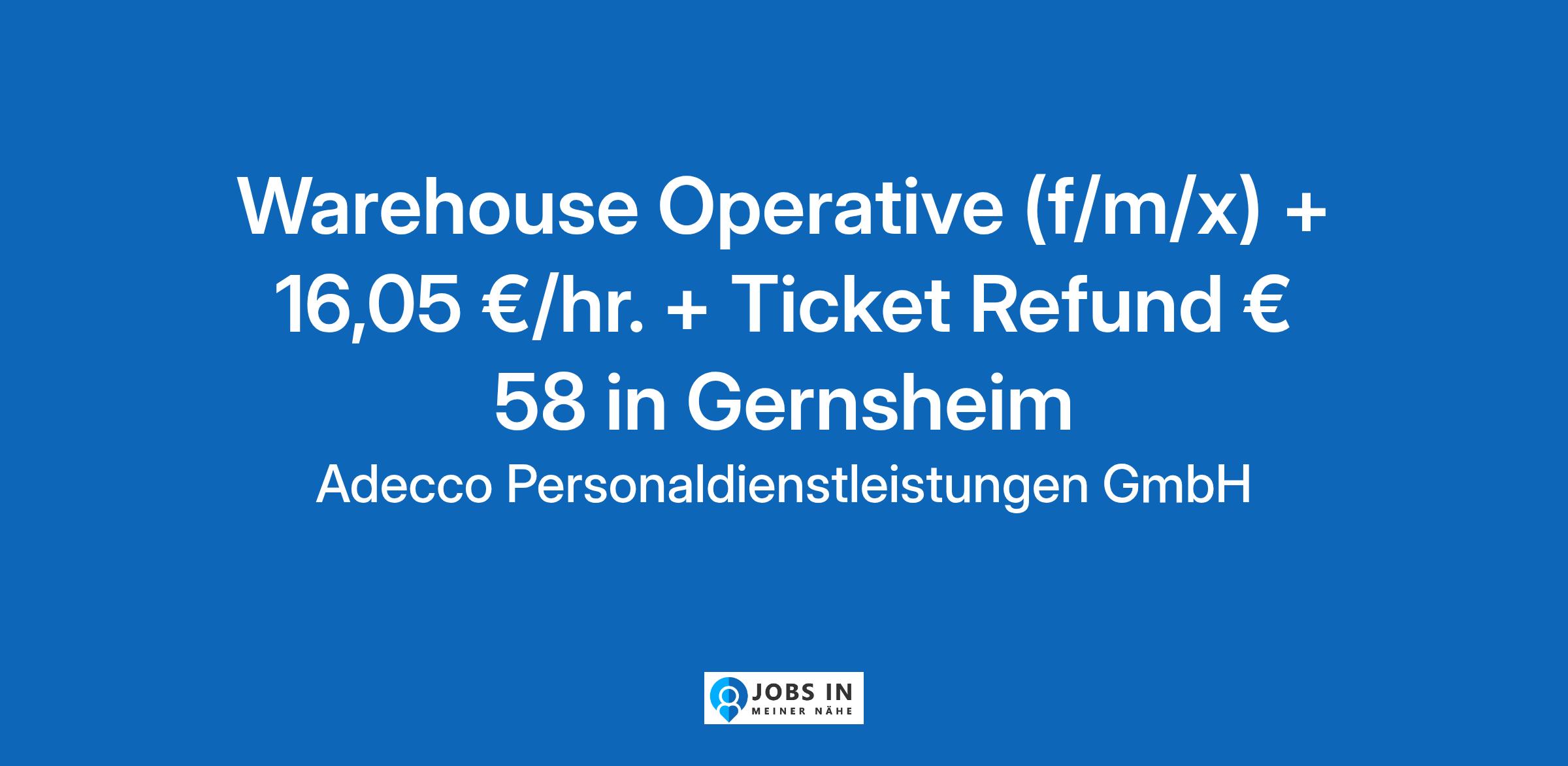 Warehouse Operative (f/m/x) + 16,05 €/hr. + Ticket Refund € 58 in Gernsheim