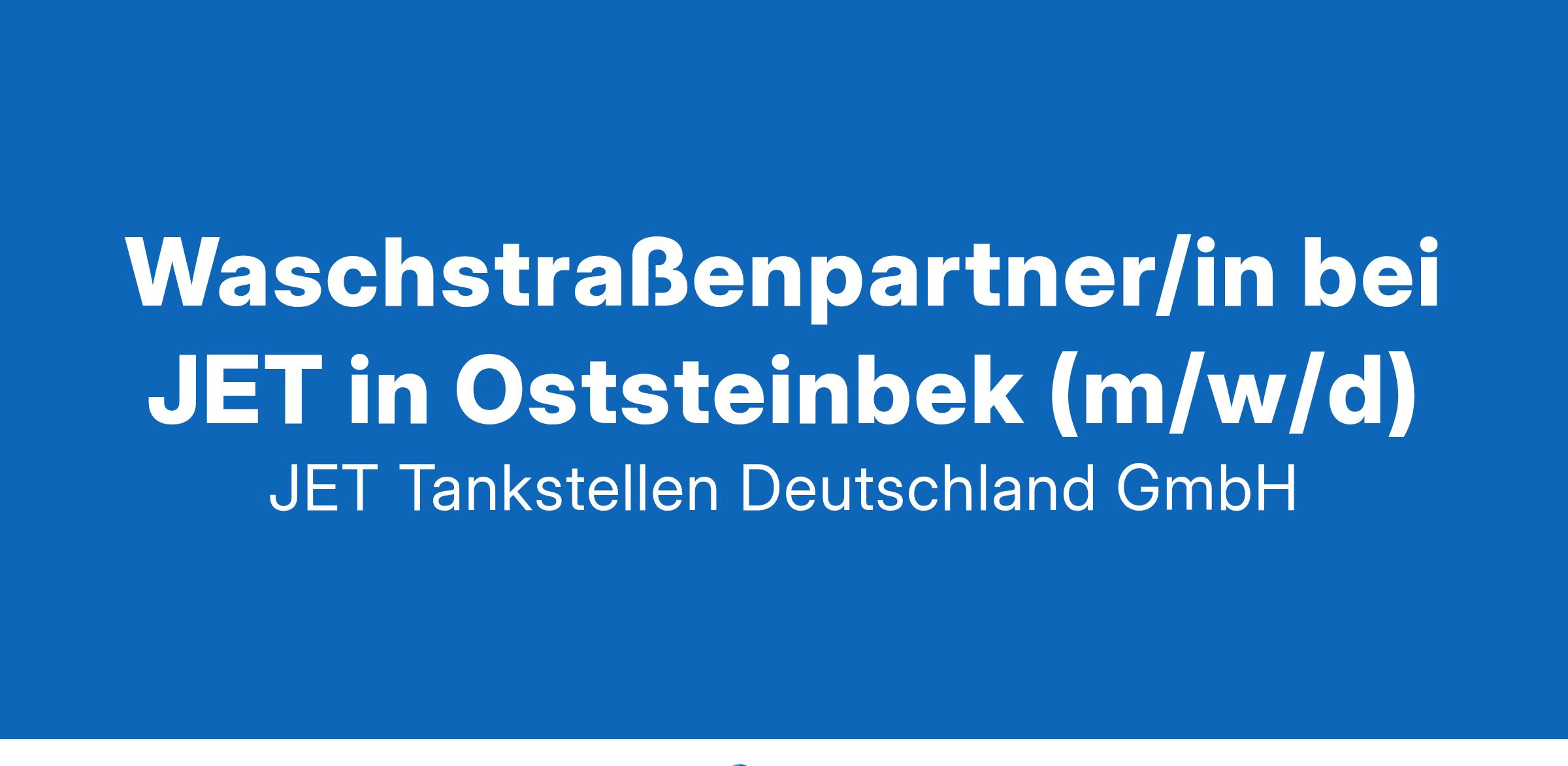 Waschstraßenpartner/in bei JET in Oststeinbek (m/w/d)Selbstständig durchstartenSchluss mit dem Arbeiten für andere. Machen Sie den Bossmove , und sich als JET Waschstraßenuntenehmer:in selbstständig.Über uns - JET und weiterSeit über 50 Jahren ist Deutschland mit JET einfach besser unterwegs. Mit günstigen Markenkraftstoffen und attraktiven Shop- und Snackangeboten erfüllen wir seit jeher die unterschiedlichen Bedürfnisse mobiler Menschen. Und werden auch in der Gestaltung künftiger Mobilität eine aktive Rolle übernehmen - mit neuen Ladeparks und der ständigen Weiterentwicklung in allen Geschäftsfeldern. Auch und vor allem in den Bereichen Shop und Bistro.