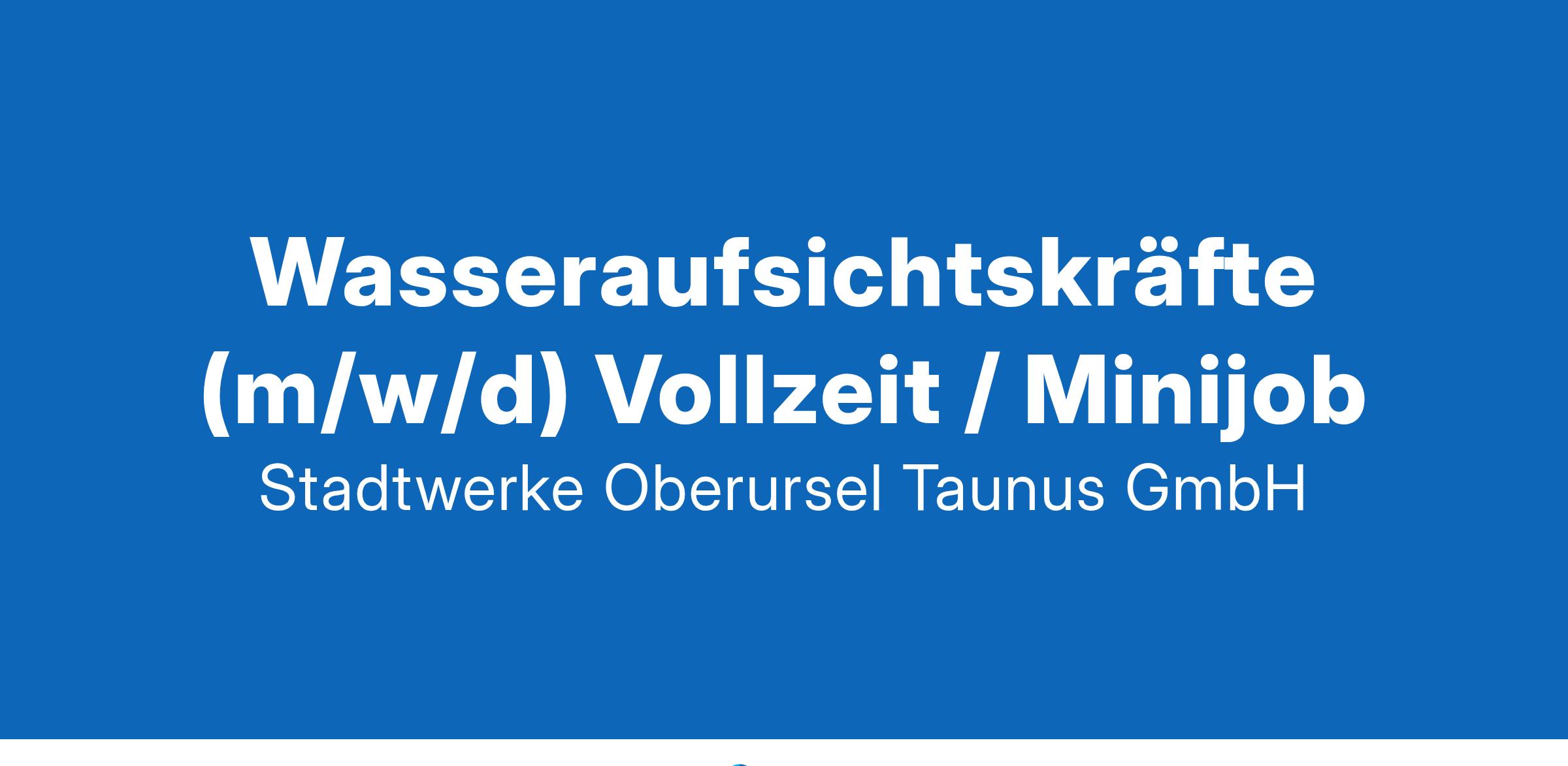 als Saisonkraft in Vollzeit oder auf Minijob-BasisDas sind wir: Als kommunales Energieversorgungsunternehmen bieten wir vielfältige Produkte und Dienstleistungen an, die zur Lebensqualität der Menschen in Oberursel und der Region beitragen. Neben der Trinkwasser-Versorgung der Stadt Oberursel (Taunus) und der Stadt Steinbach (Taunus) sowie der Belieferung der Region mit Strom, Gas und Wärme betreiben wir das TaunaBad Oberursel, die Stadthalle Oberursel, den Oberurseler Stadtbus sowie Parkhäuser und oberirdische Parkplätze in Oberursel.Vielfältige Aufgaben erwarten Sie:Unterstützung bei der Beaufsichtigung des Badebetriebes in unserem Frei- und Hallenbad Unterstützung bei der Durchführung von kleinen Reinigungsarbeiten Unterstützung bei der Durchführung von Veranstaltungen Die Möglichkeit, unser Team als Kursleiter*in zu verstärken und Schwimmkurse, AquaFitnesskurse oder Nixenschwimmen anzubieten.Das bringen Sie mit:Sie schwimmen gut und sind bereit, das Rettungsschwimmen zu lernen oder sind bereits Rettungsschwimmer*in. Sie sind in der Lage, die jährliche kombinierte Rettungsübung im Freibad und im Hallenbad erfolgreich auszuführen. Sie sind im Besitz einer aktuellen Aus- oder Fortbildung in der Ersten-Hilfe (nicht älter als zwei Jahre). Sie arbeiten gerne im Team, sind flexibel, kommunikativ und zuverlässig. Sie sind bereit, auch abends, an Wochenenden und / oder Feiertagen zu arbeiten. Sauberkeit und Hygiene sind Ihnen wichtig. Sie haben das 18. Lebensjahr vollendet. Ihre Vorteile bei uns:Ein vielseitiges und verantwortungsvolles Arbeitsumfeld, das nie langweilig wird. Ein eingespieltes und kreatives Team, das sich auf Sie freut.Ein umfangreiches Kurssystem, Kinderanimation und viele andere Veranstaltungen. Leistungsgerechte Bezahlung Eine interne Schulung zur „Wasseraufsichtskraft TaunaBad Oberursel“Lust auf unser Team?Dann freuen wir uns auf Ihre aussagekräftigen Bewerbungsunterlagen! Bitte senden Sie diese an unseren Personalservice: