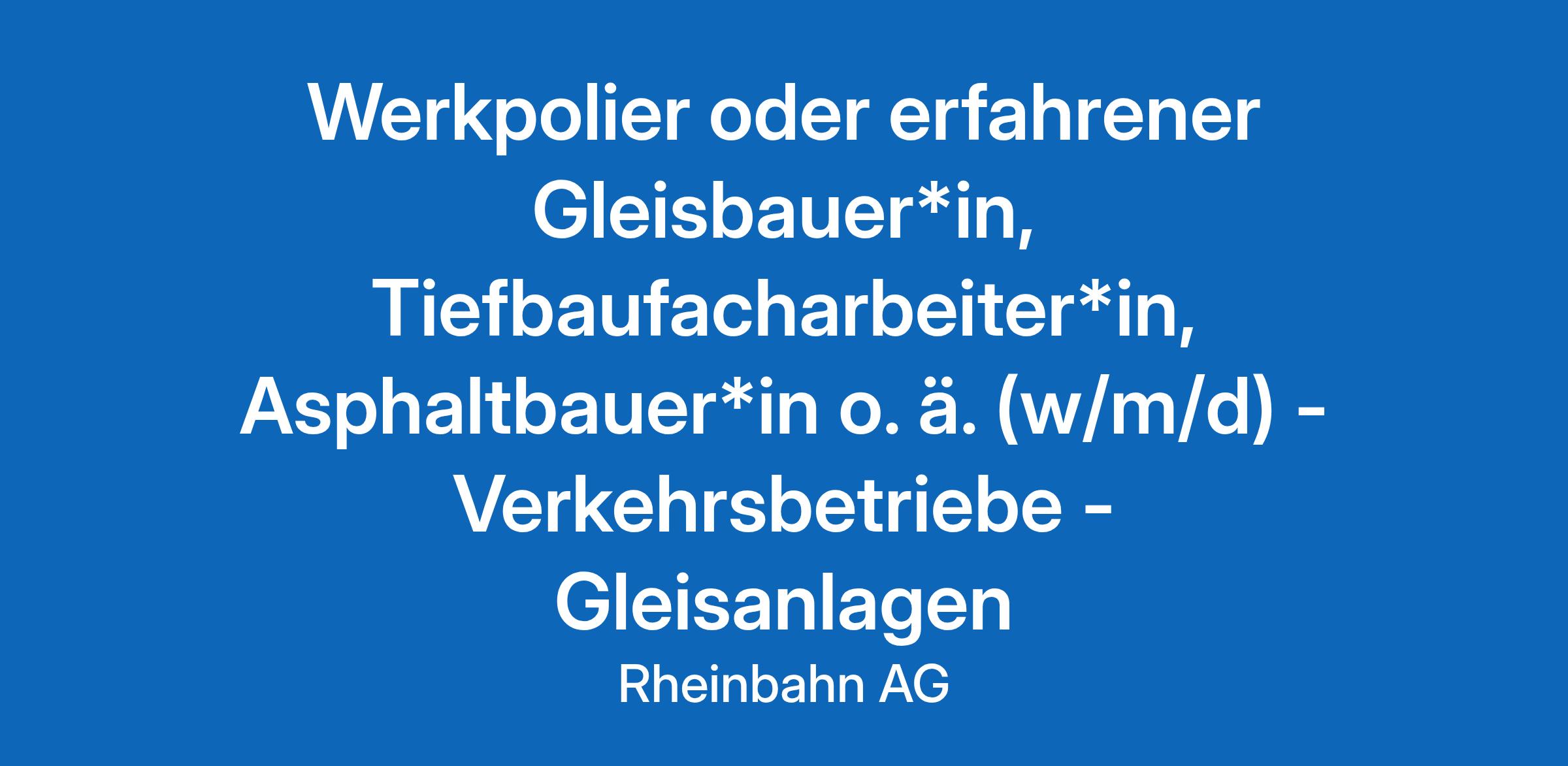 Werkpolier oder erfahrener Gleisbauer*in, Tiefbaufacharbeiter*in, Asphaltbauer*in o. ä. (w/m/d) - Verkehrsbetriebe - Gleisanlagen