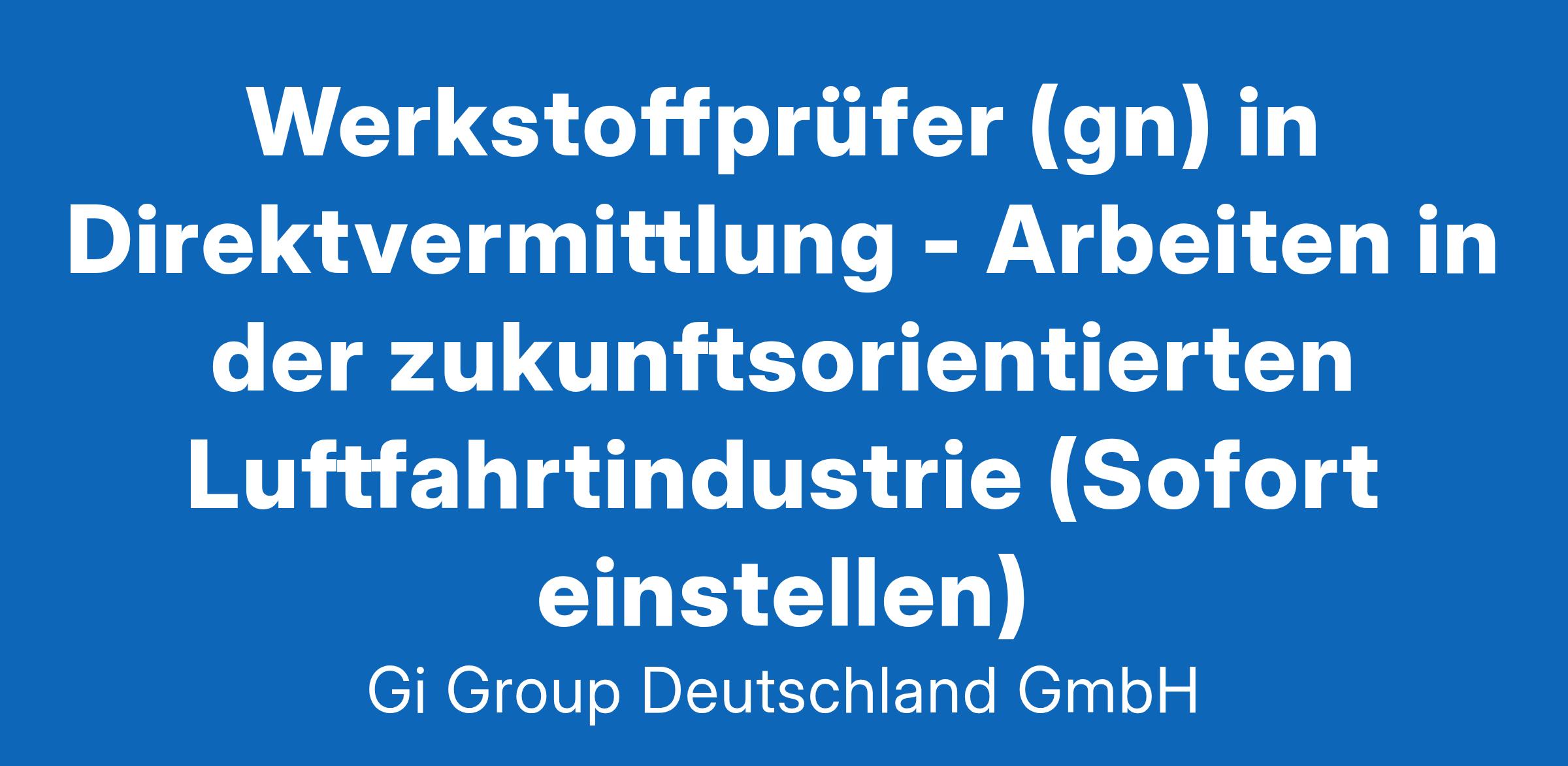 Werkstoffprüfer (gn) in Direktvermittlung - Arbeiten in der zukunftsorientierten Luftfahrtindustrie (Sofort einstellen)
