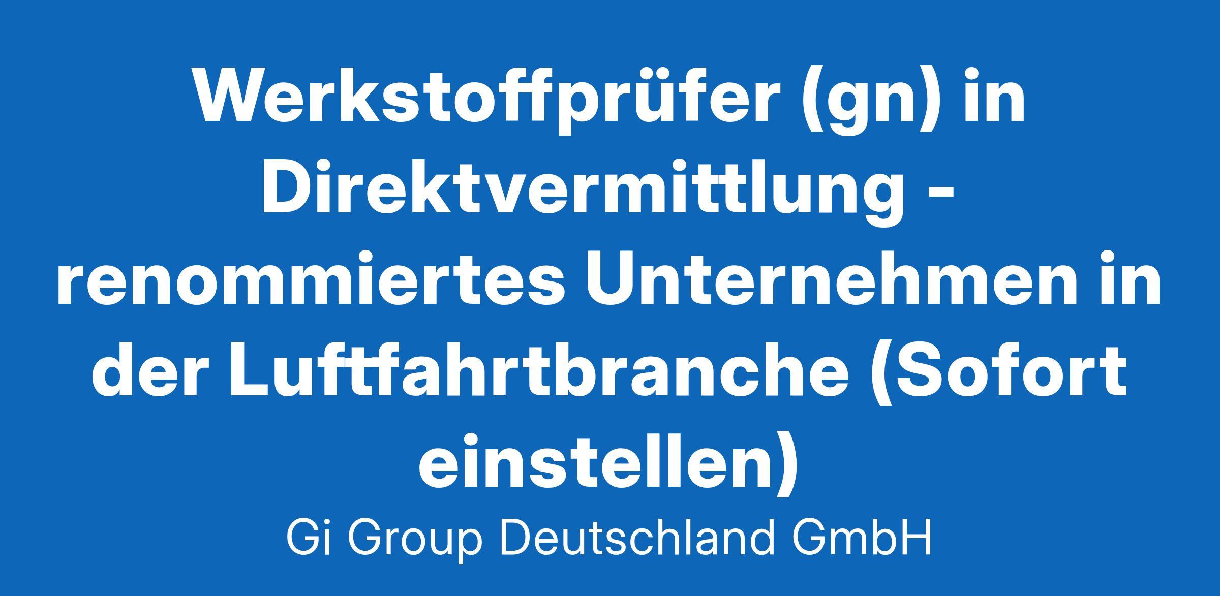 Werkstoffprüfer (gn) in Direktvermittlung ab sofort in Vollzeit in Hamburg Die Gi Group ist ein international agierender Personaldienstleister mit mehr als 500 Standorten in 40 Ländern. Unser Kunde ist ein renommiertes und zukunftsorientiertes Unternehmen aus der Luftfahrt. Deine Aufgaben Durchführung von Prüftätigkeiten mit folgenden Verfahren: Röntgen (RT), Ultraschall (UT), Wirbelstrom (ET) und Farbeindringverfahren (PT) Zubehör und Prüfgeräte erproben und instandhalten Dein Profil Eine abgeschlossene Berufsausbildung als Werkstoffprüfer oder als Facharbeiter mit entsprechenden ZfP-Qualifikationen bzw. die Bereitschaft zum Erwerb fehlender Qualifikationen Erste Erfahrungen in der digitalen Radiographie sind wünschenswert Englischkenntnisse sind wünschenswert, oder die Bereitschaft Englich innerhalb interner Schulungen zu lernen Bereitschaft zum Schichtdienst (verschiedene Schichtmodelle mit Zulagen) sowie zu mehrtägigen Dienstreisen Das bietet unser Kunde Urlaubs- und Weihnachtsgeld sowie eine Gewinnbeteiligung, 30 Tage Urlaub Flugvergünstigungen, Einkaufsrabatte in Geschäften und Jobrad-Leasing Kostenloses Parken, betriebliche Altersvorsorge und Verpflegungszuschuss für die Kantine Fitness- und Sportangebote, Jobticket/Zuschuss ÖPNV Und vieles mehr Deine Bewerbung Für Deine Bewerbung als Werkstoffprüfer klicke bitte einfach auf „Jetzt bewerben“. Dort kannst Du Deine Kontaktdaten eingeben sowie Deinen Lebenslauf und Deine Bewerbungsunterlagen hochladen. Du benötigst dafür nur ca. 1 Minute. Dein zuständiger Personaldisponent wird sich bei Dir schnellstmöglich melden. Gerne kannst Du uns auch Deine Bewerbungsunterlagen per E-Mail zusenden. Wir freuen uns auf Deine Bewerbung als Werkstoffprüfer! Unsere Stellenangebote richten sich an Arbeitssuchende jeglichen Geschlechts. (gn) = geschlechtsneutral. Kontakt Gi Group Recruiting Team