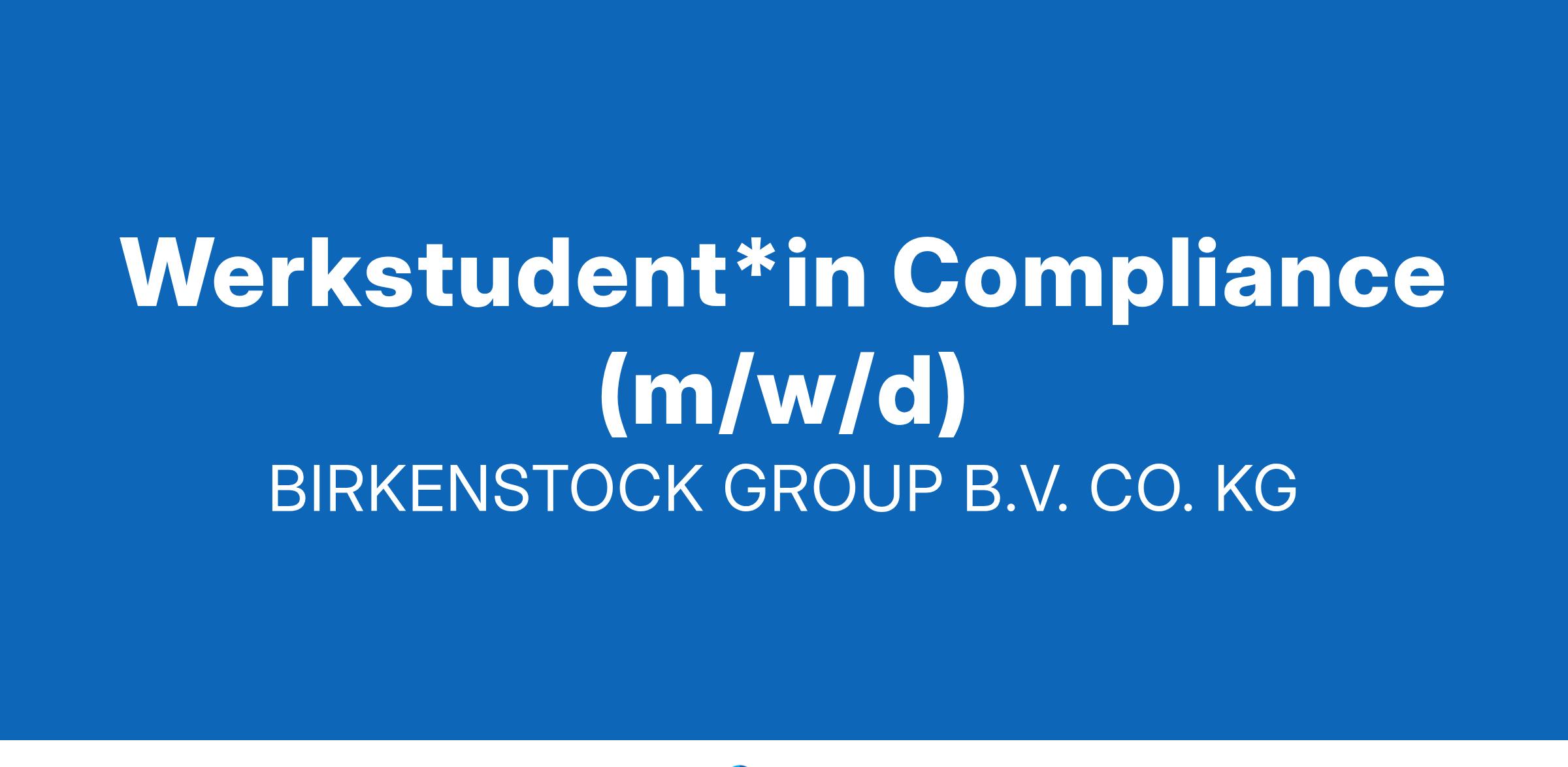BIRKENSTOCK ist eine globale universale Marke, die sich gleichermaßen an alle Konsumenten unabhängig von geografischem Standort, Geschlecht, Alter und Einkommen wendet. Die historischen Wurzeln des Unternehmens lassen sich bis ins Jahr 1774 zurückverfolgen. Mit weltweit rund 6200 Mitarbeiterinnen und Mitarbeitern ist BIRKENSTOCK der größte Arbeitgeber der deutschen Schuhindustrie. Um unsere Qualitätsstandards zu gewährleisten, produzieren wir über 95 % unserer Produkte in Deutschland und beziehen mehr als 90 % unserer Materialien und Komponenten aus Europa. Die BIRKENSTOCK Group hat ihren Sitz in Linz am Rhein und unterhält mehrere Standorte in Deutschland, sowie Vertriebsniederlassungen in Europa, Nordamerika, dem Nahen Osten und Asien. Werde ein Teil unseres Teams am Standort in Köln als Werkstudent*in Compliance (m/w/d) DEIN NEUES PAAR SCHUHE: Du hilfst bei der Umsetzung organisatorischer und prozessualer Anforderungen an ein Compliance Management System. Du unterstützt Dein Team bei der fachlichen Konzeption, der Implementierung und Weiterentwicklung des Compliance Management Systems. Du hast die Möglichkeit, Dich aktiv in das Tagesgeschäft einzubringen und hast die Chance, eigenständige Aufgaben zu übernehmen und an Team-Projekten mitzuwirken. Du unterstützt das Team bei der Erstellung von Präsentationen und Berichten über alle Hierarchieebenen hinweg. DEIN WEG DURCHS LEBEN: Du befindest dich derzeit in einem Studium im Bereich BWL, VWL, Rechtswissenschaften, Wirtschaftsrecht oder einer vergleichbaren Studienrichtung mit mindestens drei abgeschlossenen Semestern. Du hast Interesse an Compliance-Themen, bringst bereits theoretische Kenntnisse darüber mit und möchtest dich im Team einbringen. Du stehst für ca. 16 Stunden pro Woche zur Verfügung. Mit MS-Office kannst du umgehen. Du hast eine motivierte, eigenständige und pragmatische Arbeitsweise mit Hands-on-Mentalität. Gute Deutsch- und Englischkenntnisse in Wort und Schrift. WIR BIETEN DIR: BIRKENSTOCK bietet Dir alle Vorteile eines erfolgreichen, stark wachsenden, globalen Unternehmens: ein dynamisches Arbeitsumfeld, großen Gestaltungsspielraum, eine authentische und offene Unternehmenskultur sowie hervorragende Entwicklungsmöglichkeiten. Klingt spannend? Ist es auch. Unser Talent Acquisition Team freut sich auf Deine Online-Bewerbung. Jetzt bewerben »