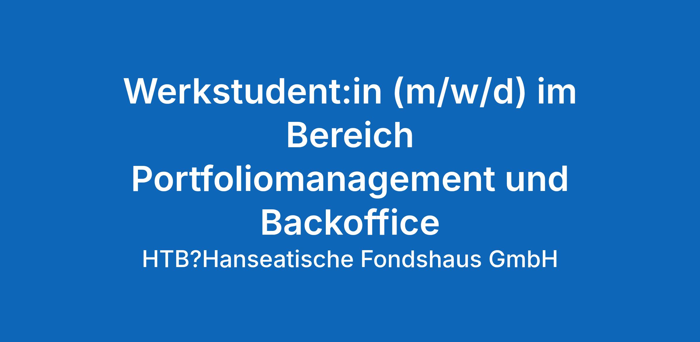 Wir, die HTB Hanseatische Fondshaus GmbH, Bremen, sind eine von der Bundesanstalt für Finanzdienstleistungsaufsicht (BaFin) zugelassene, etablierte und wachsende Kapitalverwaltungsgesellschaft (KVG) im Finanzdienstleistungsbereich. Neben der Auflage eigener geschlossener Alternativer Investmentfonds (AIF) ist die Gesellschaft als Service-KVG in den Bereichen Immobilien, Schiffe sowie Private Equity tätig. Zur weiteren Verstärkung unseres Teams in Bremen suchen wir zum nächstmöglichen Zeitpunkt oder nach Vereinbarung eine:n Werkstudent:in im Bereich Portfoliomanagement und Backoffice.