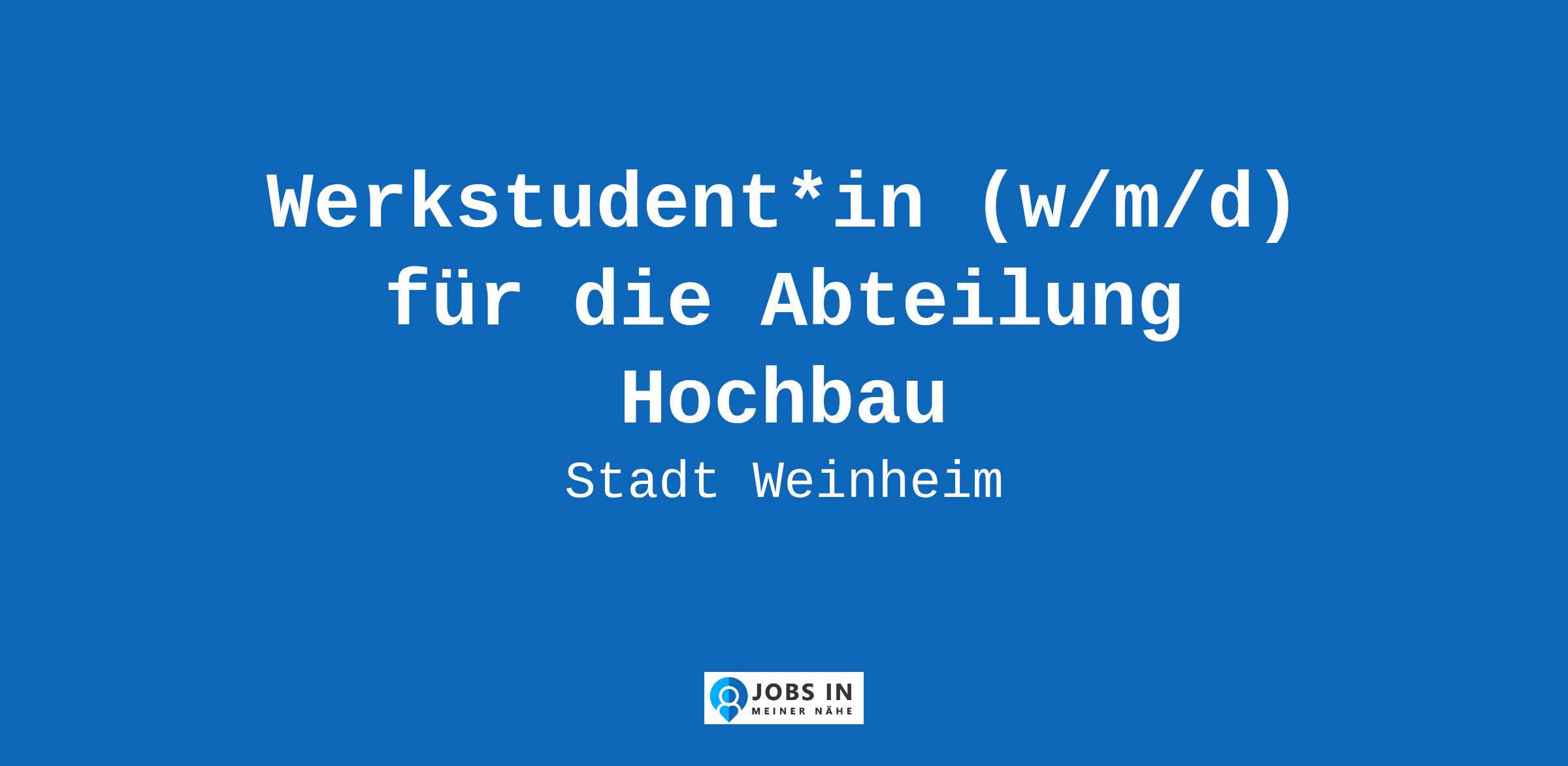 Die Stadt Weinheim mit rund 45.500 Einwohner*innen ist innerhalb der Metropolregion Rhein-Neckar ein beliebter Wohnort mit großem Bildungs-, Sport- und Kulturangebot. Wir als Beschäftigte (ca. 800) der Stadtverwaltung wollen unsere Stadt Tag für Tag weiterentwickeln. Wenn Sie Teil unseres Te... Student Studentenjob Aushilfe Hilfskraft Werkstudierender Datenerfasser öffentlicher Dienst Hochbau;Selbstbewusstsein;IT Kenntnisse;Datenerfassung;Datenaufbereitung;Planung;Digitalisierung Original Stellenanzeige auf StepStone.de – Jetzt Jobagent bei StepStone einrichten und Traumjob finden! https://bit.ly/2KOagYD Mehr Informationen zu Arbeitgebern, Gehaltsdaten und Karrieretipps finden Sie auf StepStone.de