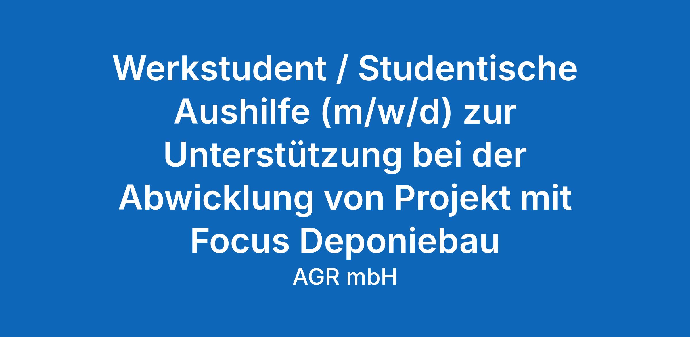 Werkstudent / Studentische Aushilfe (m/w/d) zur Unterstützung bei der Abwicklung von Projekt mit Focus Deponiebau
