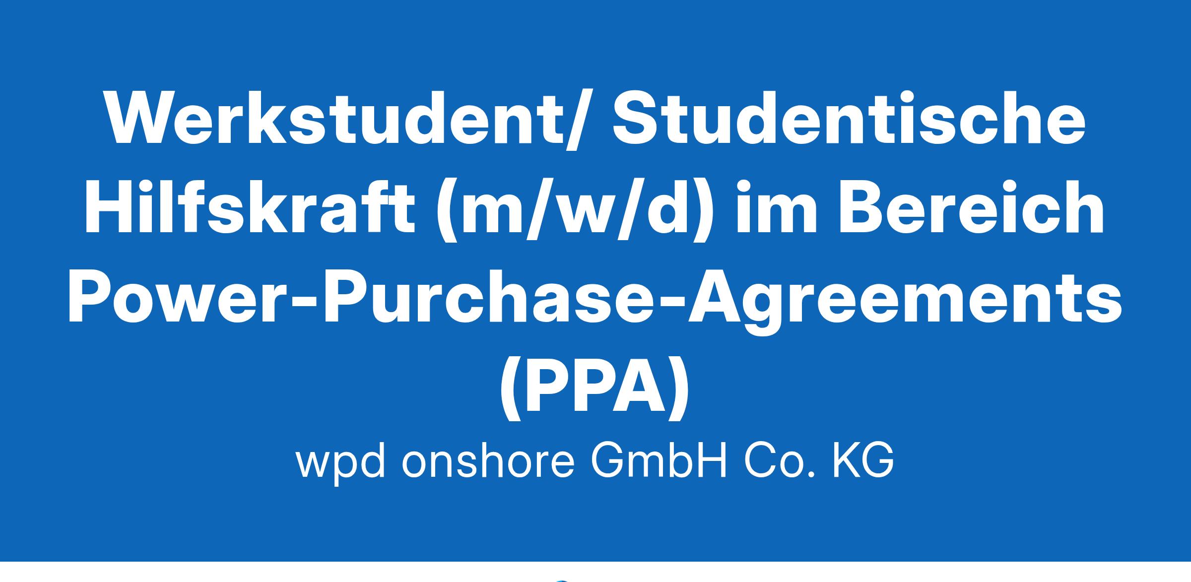 Du möchtest nachhaltig etwas bewegen? Den Ausbau der erneuerbaren Energien in einem wachsenden und zukunftsfähigen Geschäftsfeld weiter voranbringen? wpd bietet dir die Möglichkeit dazu!Komm zu uns ins PPA-Team der wpd onshore GmbH & Co. KG in Bremen alsWerkstudent/ Studentische Hilfskraft (m/w/d) im Bereich Power-Purchase-Agreements (PPA)in Teilzeit (10-20 Stunden/ Woche) für mindestens ein Jahr