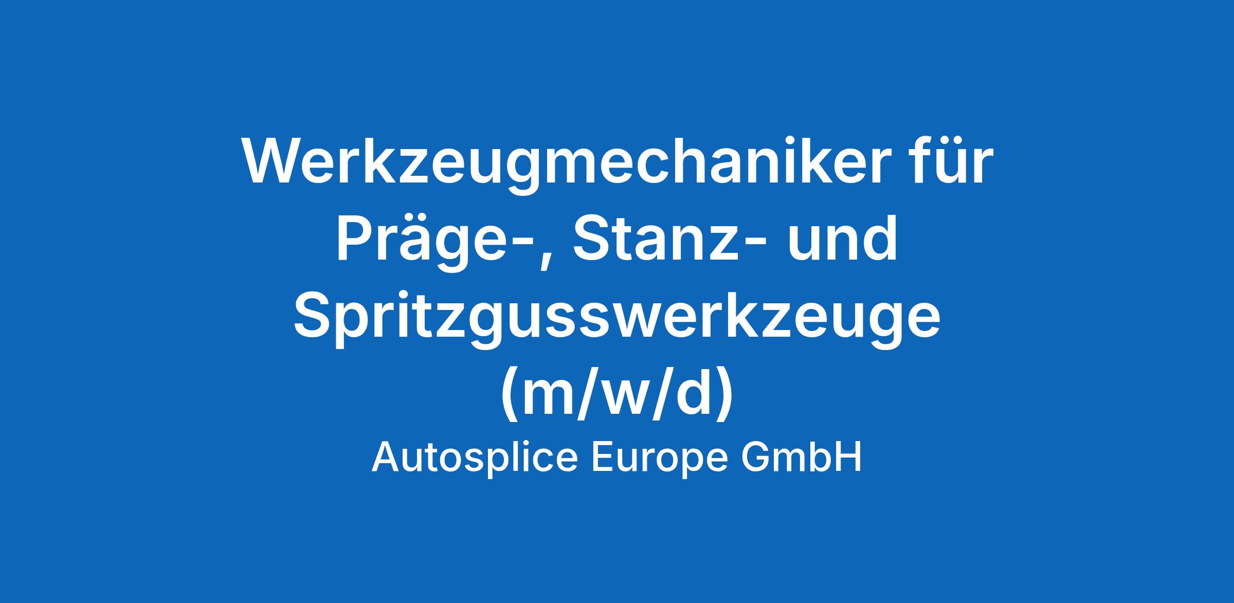 Werkzeugmechaniker für Präge-, Stanz- und Spritzgusswerkzeuge (m/w/d)