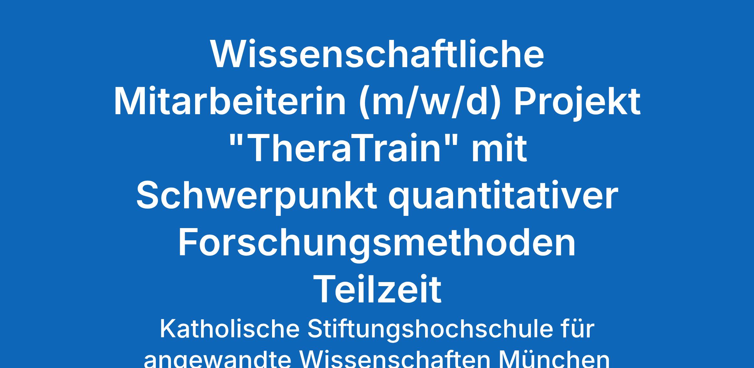 Wissenschaftliche Mitarbeiterin (m/w/d) Projekt "TheraTrain" mit Schwerpunkt quantitativer Forschungsmethoden