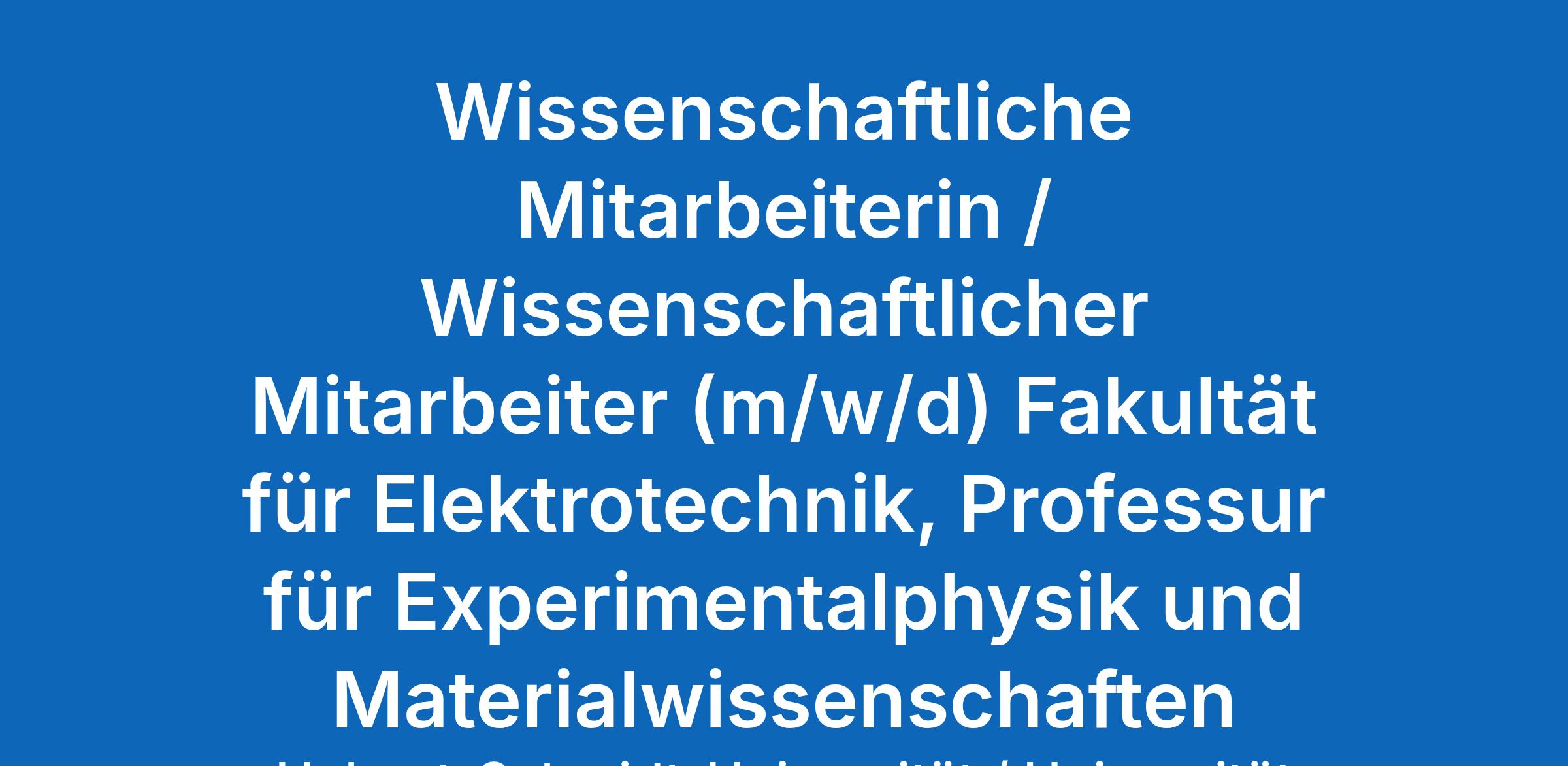 An der Helmut-Schmidt-Universität / Universität der Bundeswehr Hamburg (HSU / UniBw H), Fakultät für Elektrotechnik, Professur für Experimentalphysik und Materialwissenschaften (Herr Univ.-Prof. Dr. Kip), ist ab dem 01.07.2026 die Stelle einer / eines