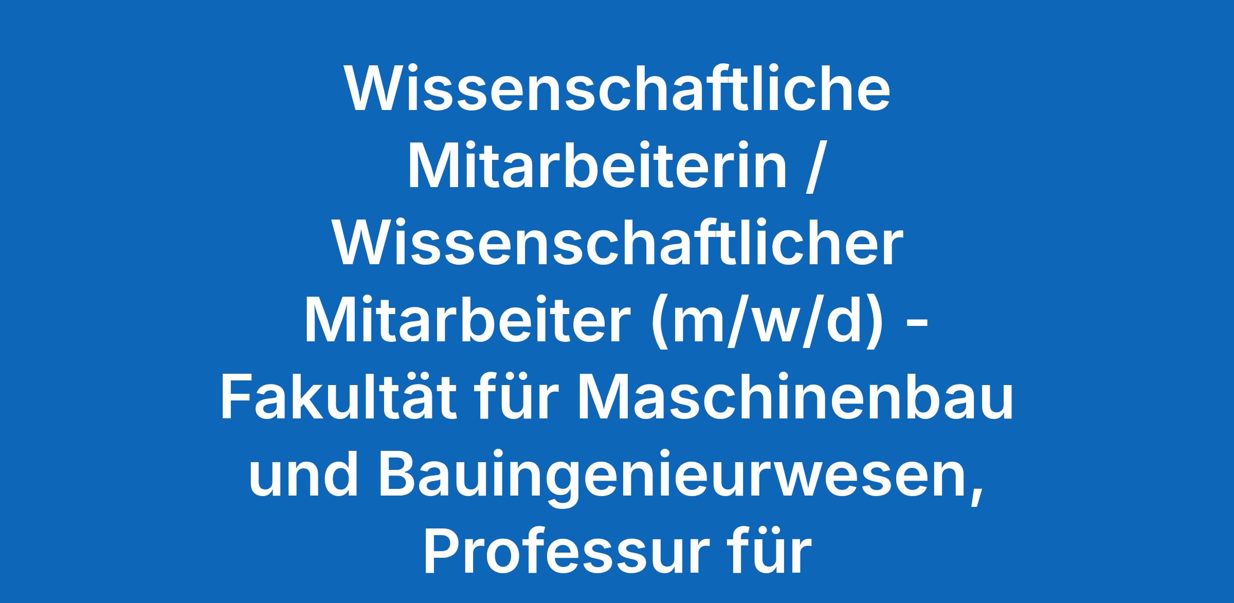 Wissenschaftliche Mitarbeiterin / Wissenschaftlicher Mitarbeiter (m/w/d) - Fakultät für Maschinenbau und Bauingenieurwesen, Professur für Strömungsmechanik