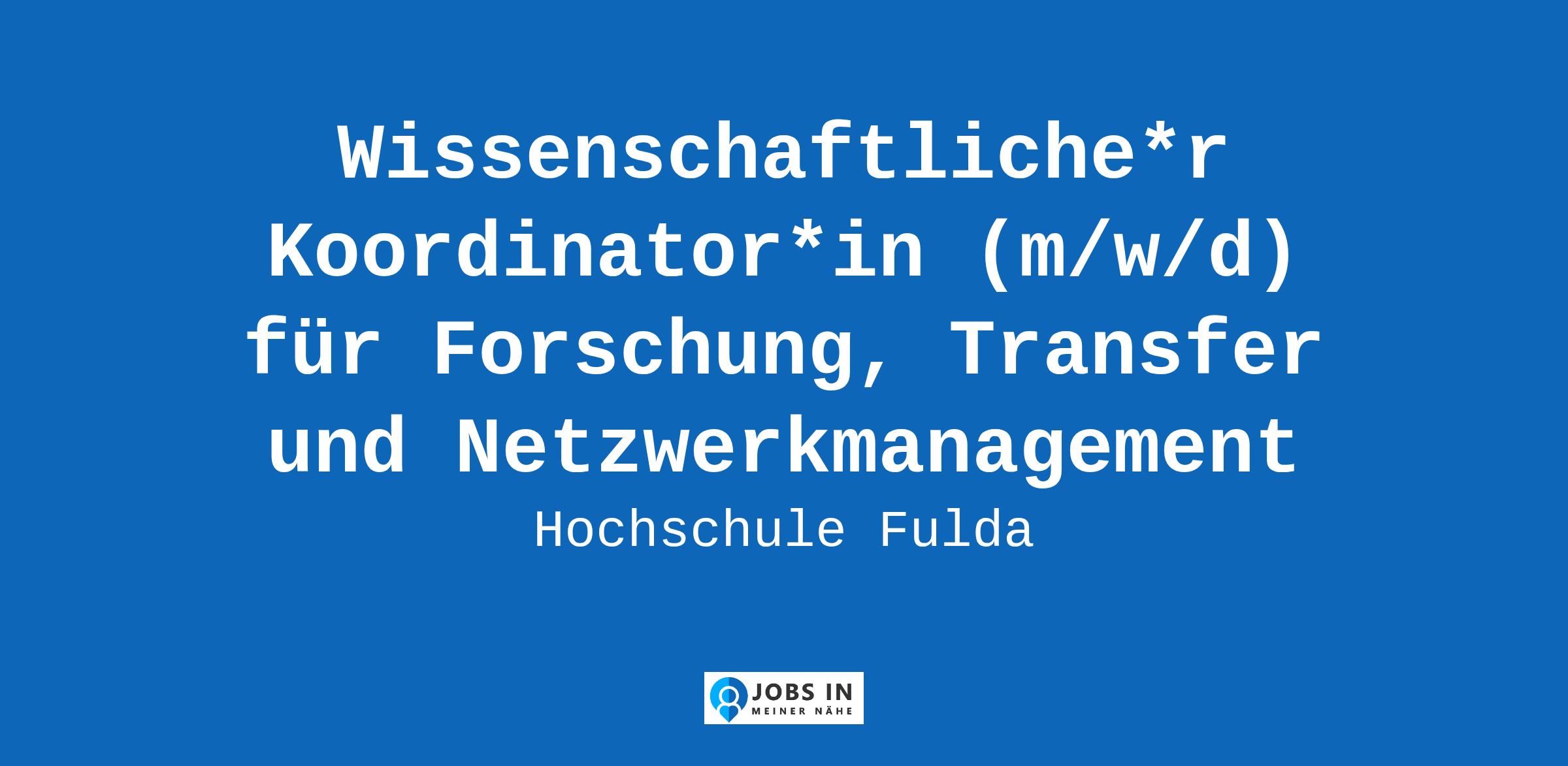 Wissenschaftliche*r Koordinator*in (m/w/d) für Forschung, Transfer und Netzwerkmanagement
