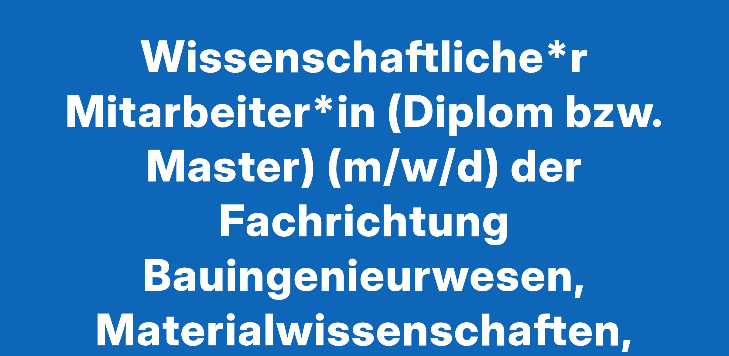 Wissenschaftliche*r Mitarbeiter*in (Diplom bzw. Master) (m/w/d) der Fachrichtung Bauingenieurwesen, Materialwissenschaften, Werkstofftechnik, Chemie, Umweltwissenschaften o. ä.