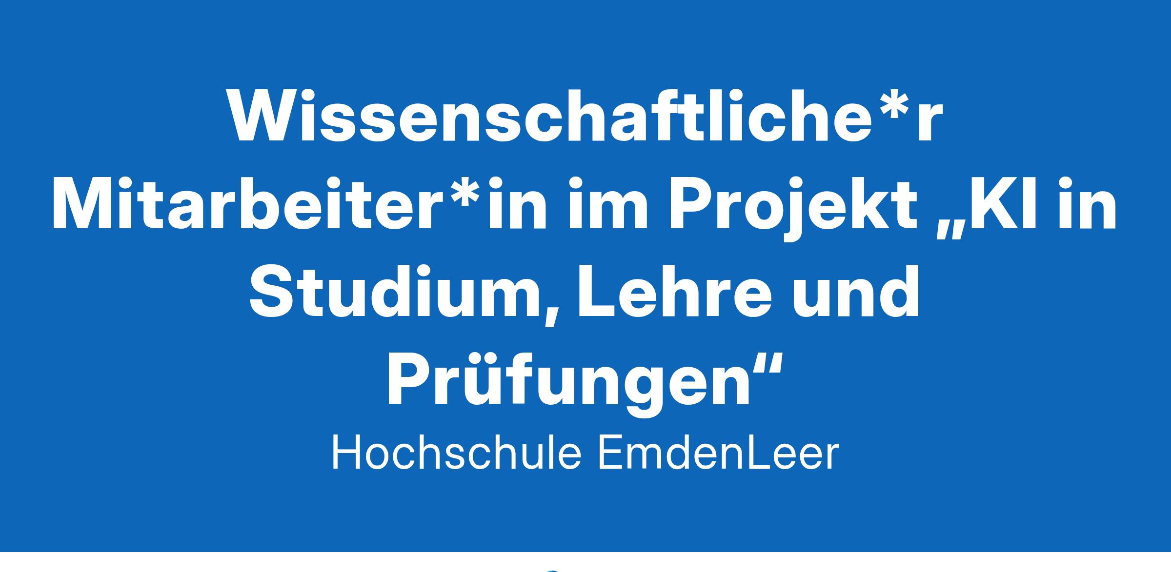 Bodenständig, friesisch, authentisch – und in einer Spitzenposition, wenn es um zukunftsweisende Innovationen geht: Die Hochschule Emden/Leer ist Impulsgeberin für die Region. An der Hochschule Emden/Leer, die sich als innovative, richtungsweisende Zukunftshochschule versteht, ist in der Einrichtung CampusDidaktik am Campus Emden zum nächstmöglichen Zeitpunkt folgende Stelle mit der Hälfte der regelmäßigen wöchentlichen Arbeitszeit einer Vollbeschäftigung – befristet für die Dauer von vier Jahren – zu besetzen: Wissenschaftliche*r Mitarbeiter*in im Projekt „KI in Studium, Lehre und Prüfungen“