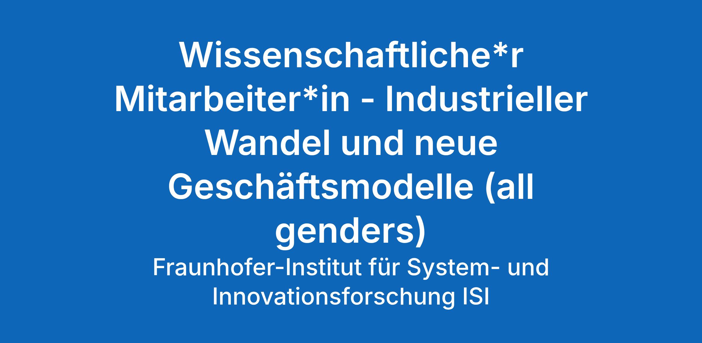 Die Stelle ist im Geschäftsfeld "Industrieller Wandel und neue Geschäftsmodelle" in der Abteilung "Innovations- und Wissensökonomie" angesiedelt und zum nächstmöglichen Zeitpunkt zu besetzen.
