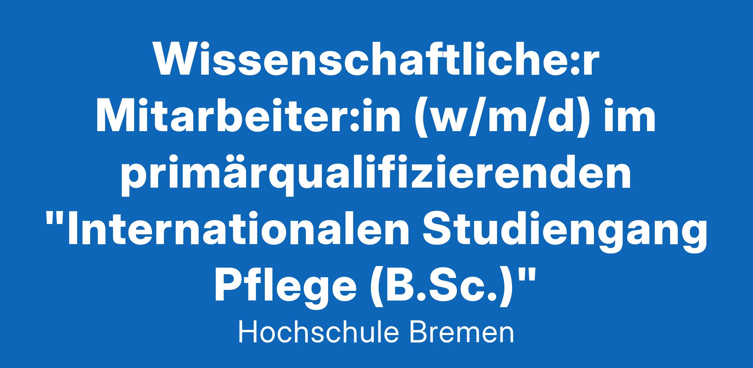 Wir freuen uns über Ihre aussagekräftige Bewerbung inkl. Unterlagen bis einschließlich 19.02.2025 über career.hs-bremen.de.